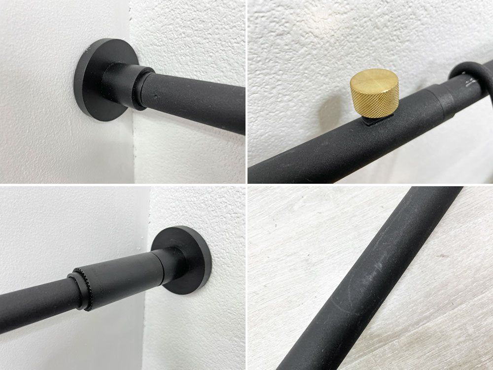 従来の生活感の出やすい突っ張り棒とは一線を画すモダンなデザイン。「空間に線を引くように取り付けるお洒落な突っ張り棒」というテーマで開発され、確りとした強度のスチールにブラック色の粉末塗装を施し、マットな質感がワンランク上の都会的な空間演出を可能にしてくれます。