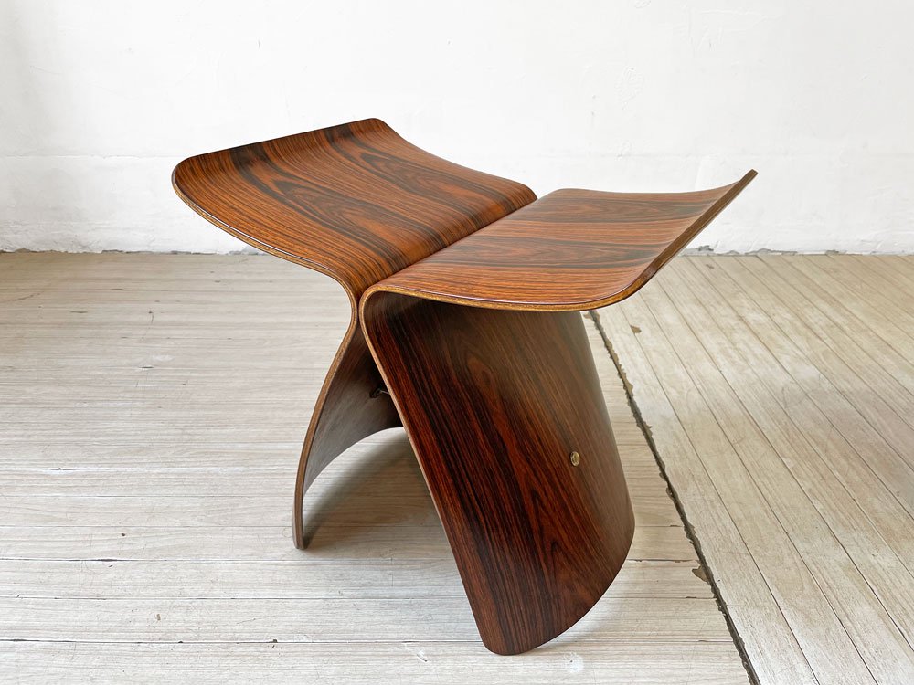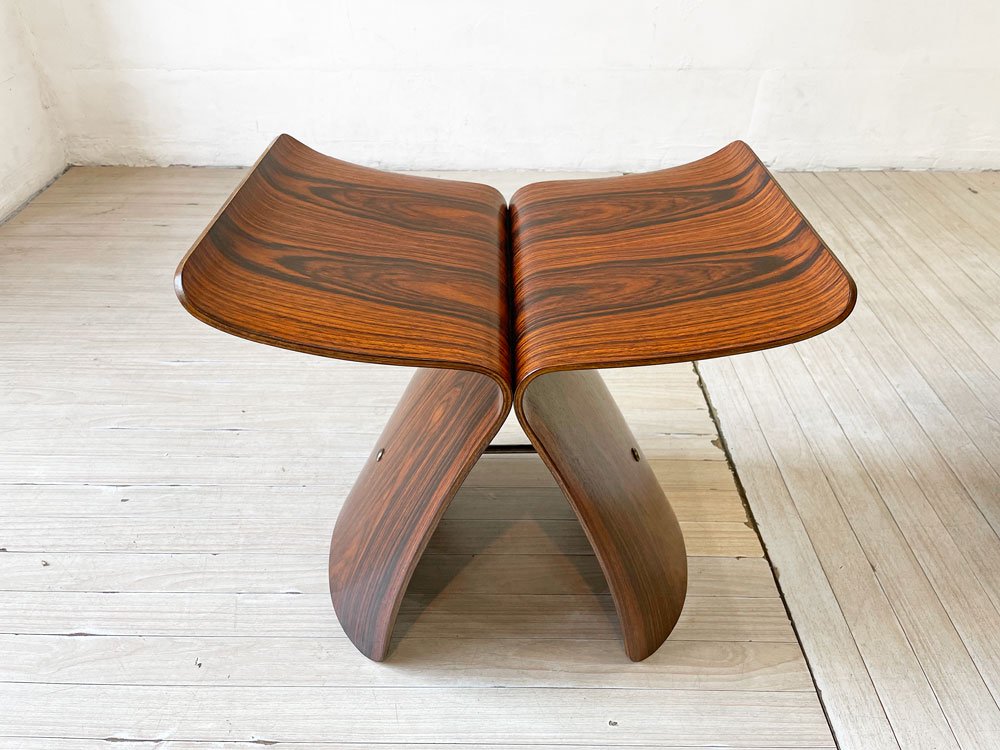 天童木工 Tendo ビンテージ バタフライスツール 初期型 ローズウッド 柳宗理 名作スツール ジャパニーズミッドセンチュリー MoMA 手書き番号 現行クッション付 希少 ~ブラジリアンローズウッドは蝶になる。~
