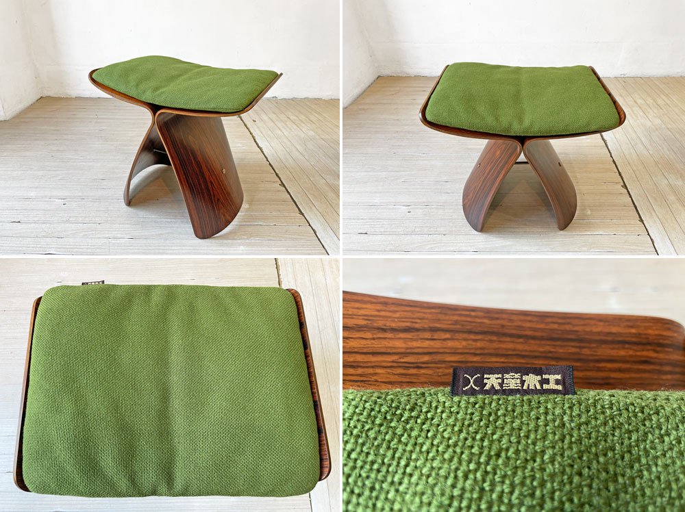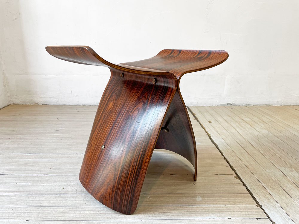 天童木工 Tendo ビンテージ バタフライスツール 初期型 ローズウッド 柳宗理 名作スツール ジャパニーズミッドセンチュリー MoMA 手書き番号 現行クッション付 希少 ★