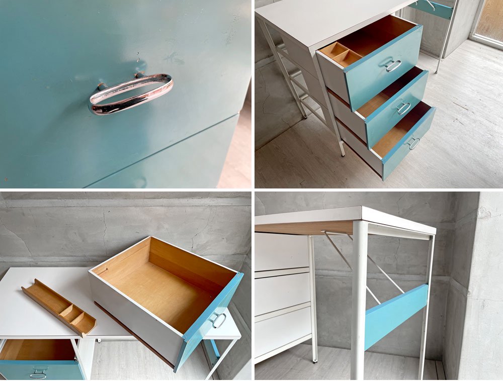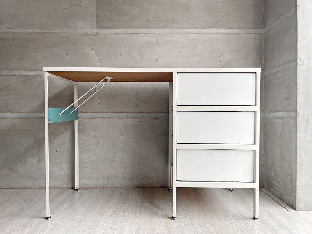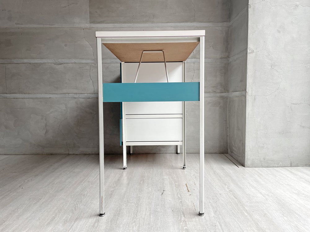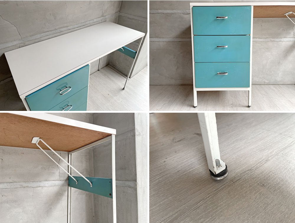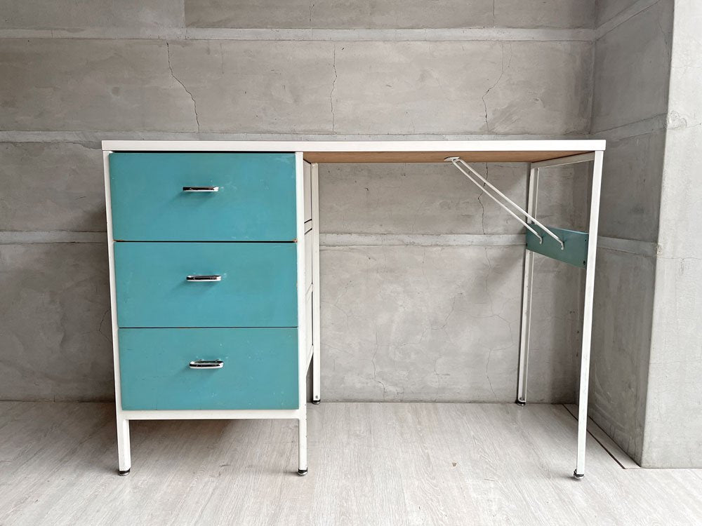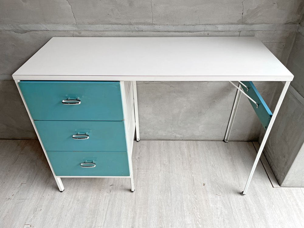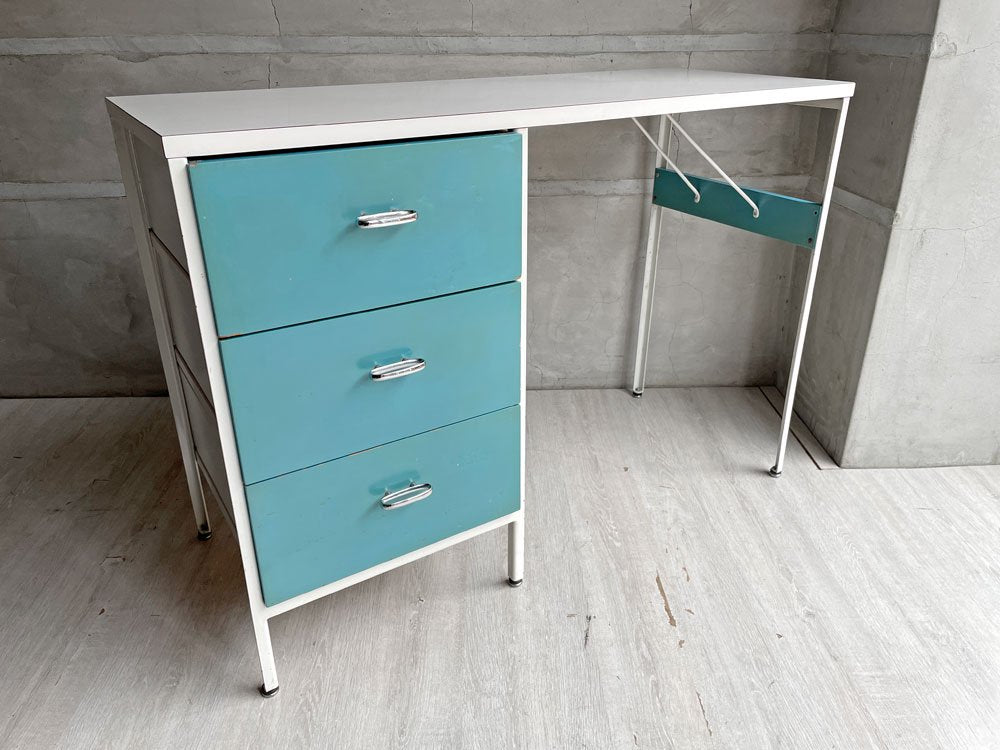ハーマンミラー Herman Miller ビンテージ 片袖デスク ホワイト×ブルー スチールフレーム ジョージネルソン George Nelson ミッドセンチュリー 希少プロダクト ♪