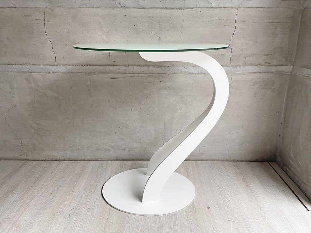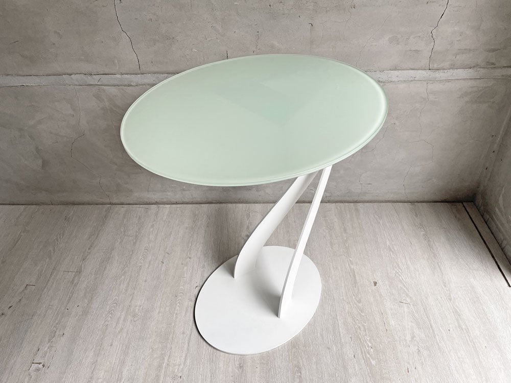 ペッツァーニ Pezzani スワン SWAN サイドテーブル フロストガラス天板 ホワイト イタリアンモダン 廃番 参考定価¥41,250- ♪