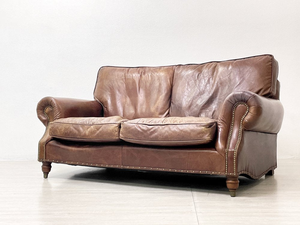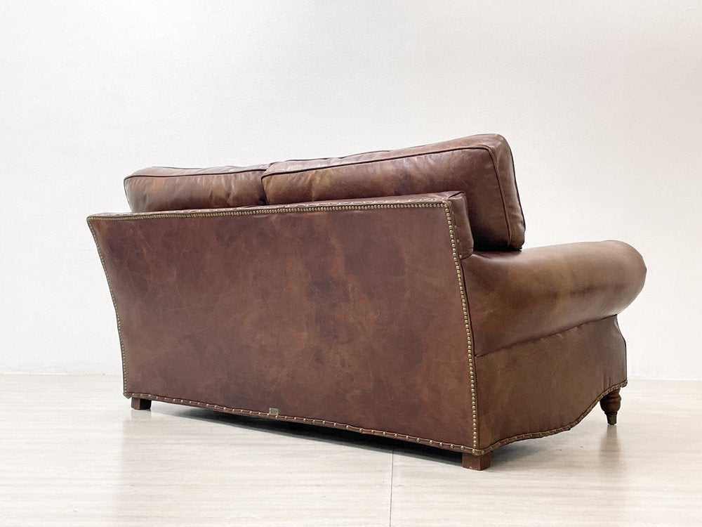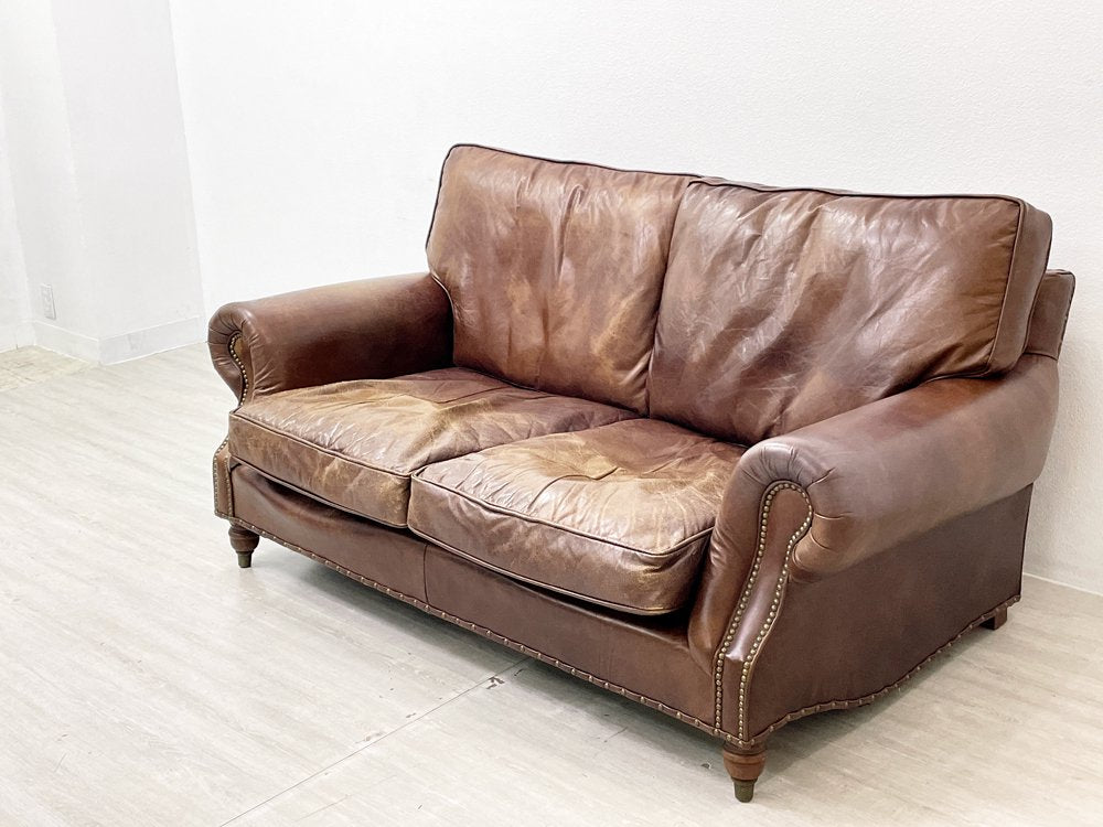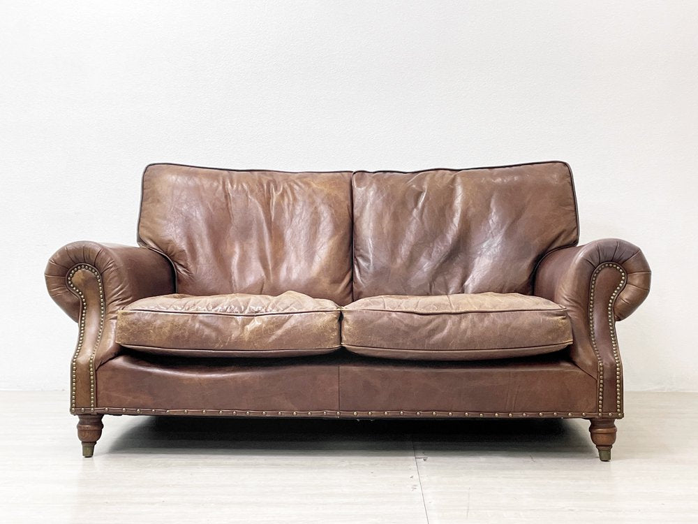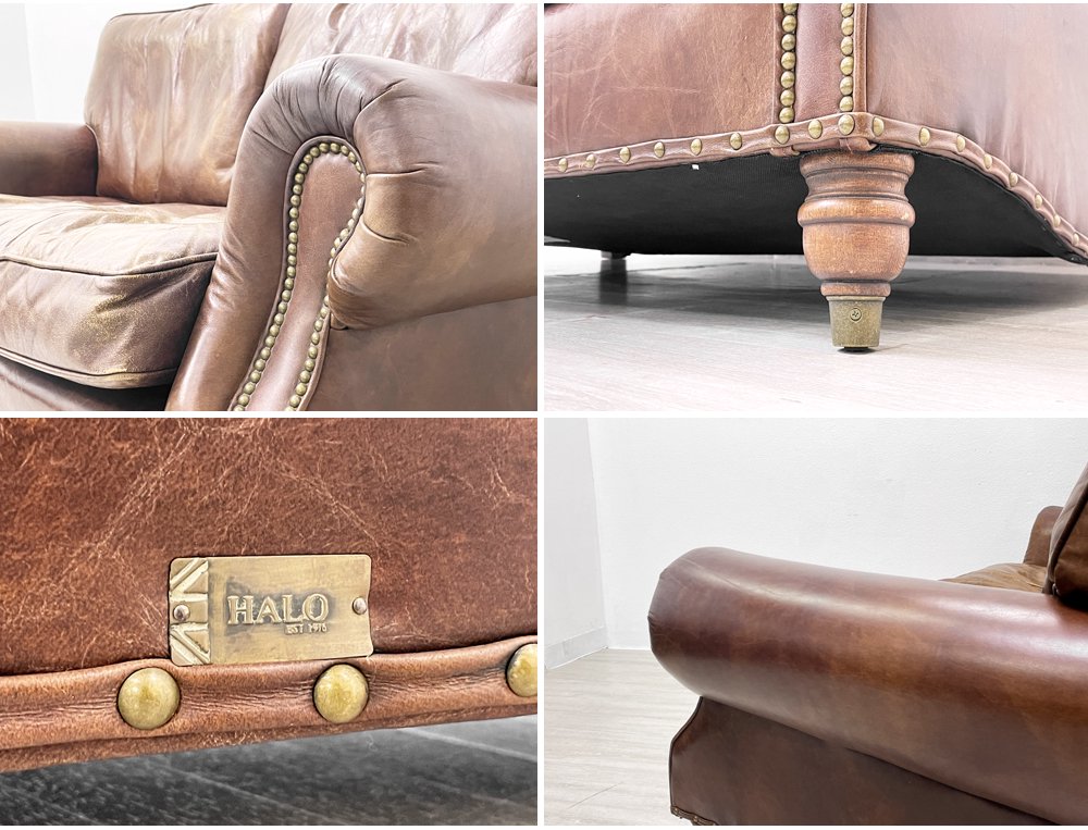 ハロ HALO バルモラル BALMORAL 2Pソファ 牛本革 アッシュ材 鋲打 ダークブラウン 英国 ビンテージスタイル アスプルンド取扱 定価¥473,000- ●