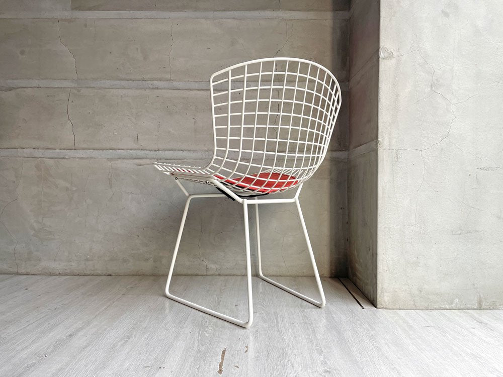 ノル Knoll 420 サイドチェア ワイヤーチェア ハリー・ベルトイア Harry Bertoia ホワイト シートパッド付 ミッドセンチュリー ♪