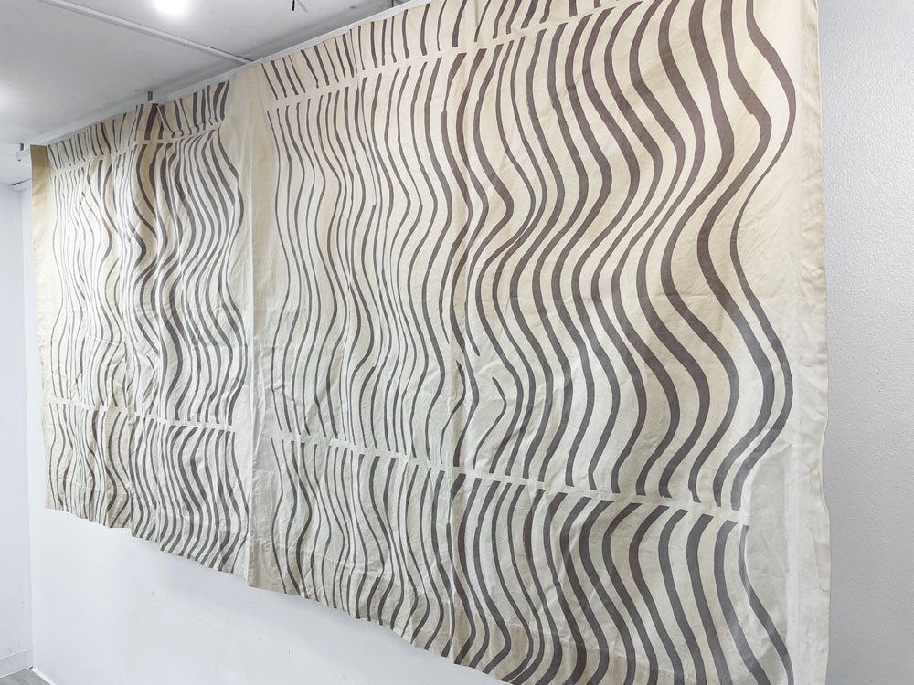 フリーハンドで描かれたようなランダムな縞が美しいビンテージの一枚。