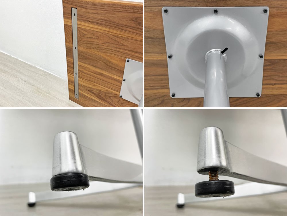 天板裏には無垢材特有の反りや割れの進行を防いでくれる金具を備え、凹凸のある床面でもグラつきなくお使い頂けるアジャスター付きのグライズも装備し、快適にお使い頂けます。