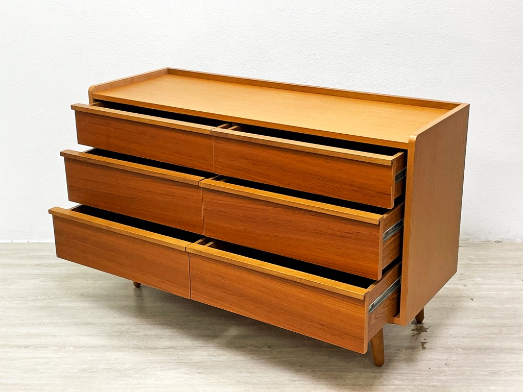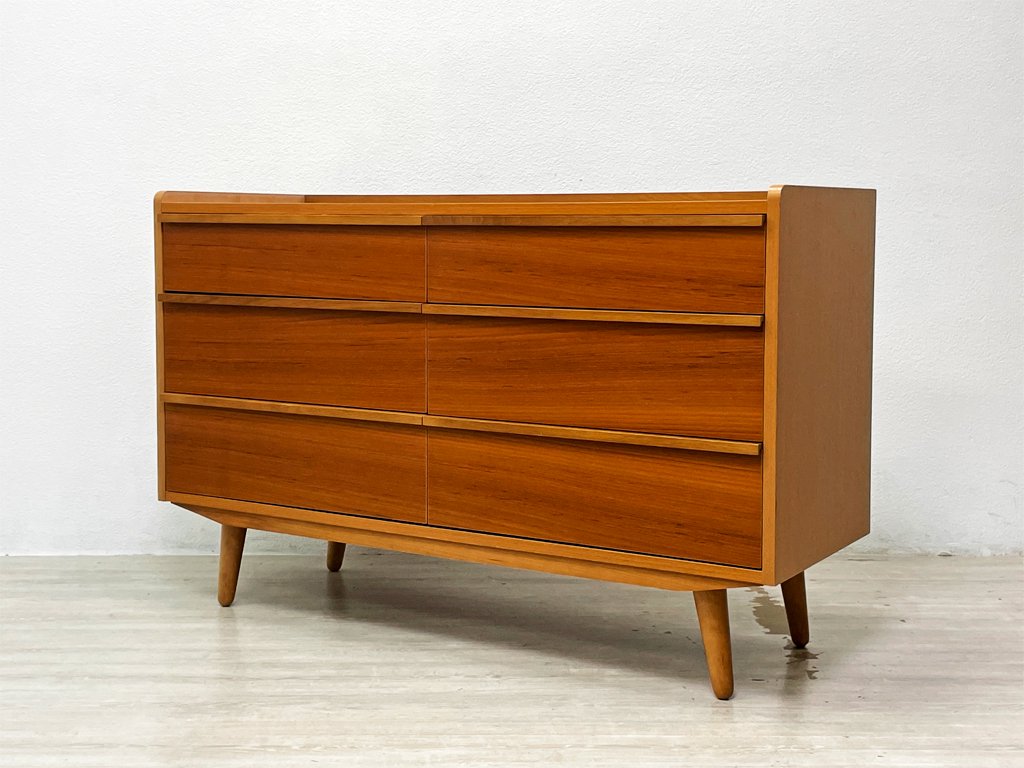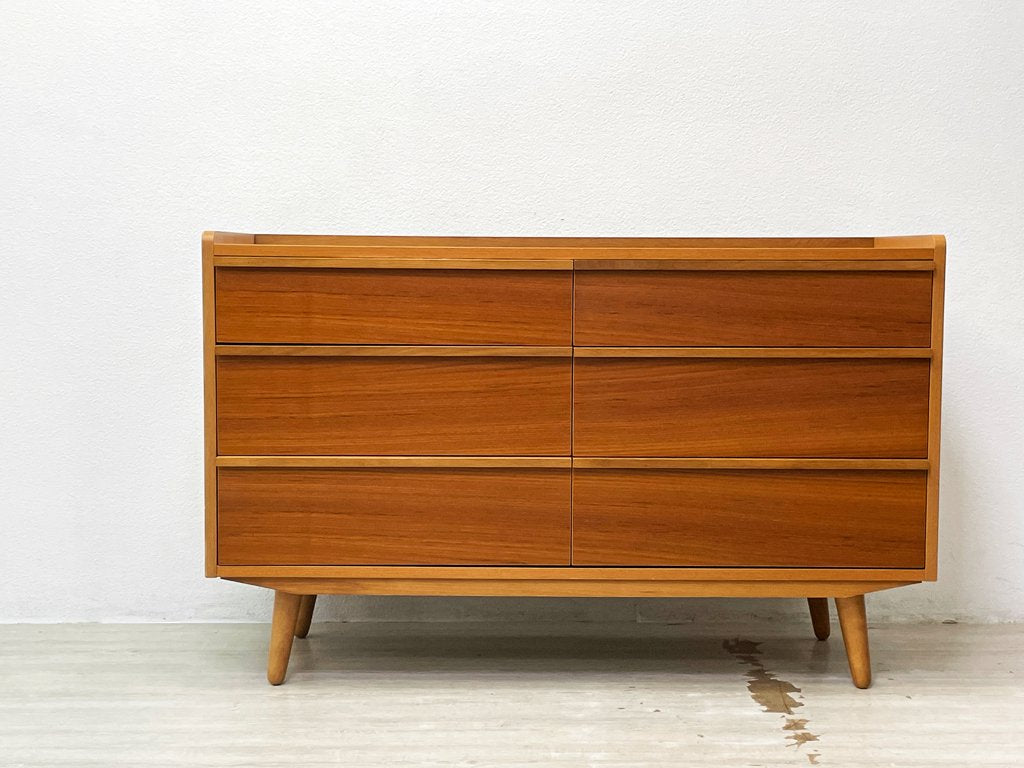 ウニコ unico アルベロ ALBERO ワイドチェスト チーク材 抽斗6杯 整理箪笥 北欧ビンテージスタイル 廃番 ●