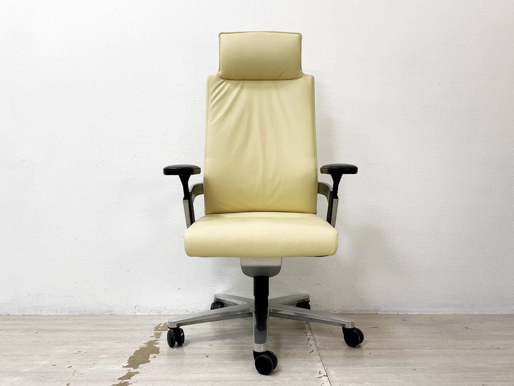 ウィルクハーン Wilkhahn オン ON ハイバック アームチェア 総本革 ヘッドレスト付 オフィスチェア グッドデザイン賞 定価363,000円 A ●