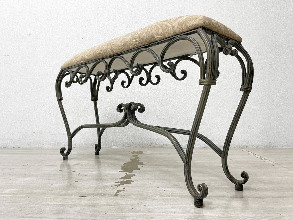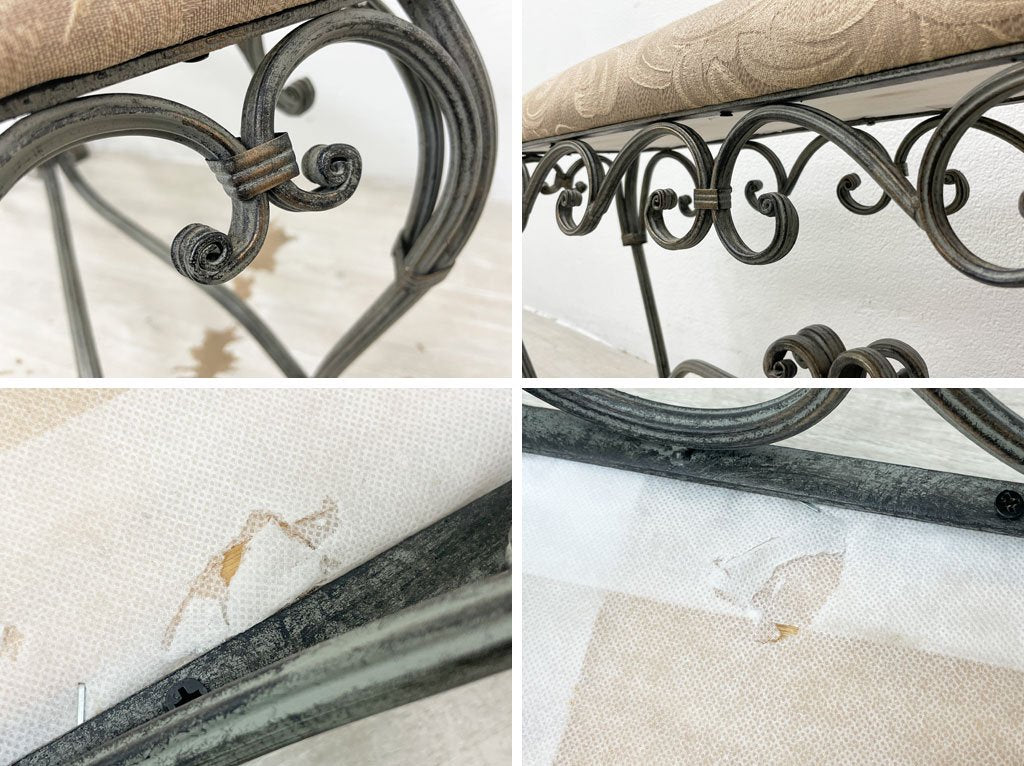 モビリグランデ MOBILE GRANDE アイアンベンチ W86cm ファブリック クラシカル アンティークスタイル 定価22,000円 ●