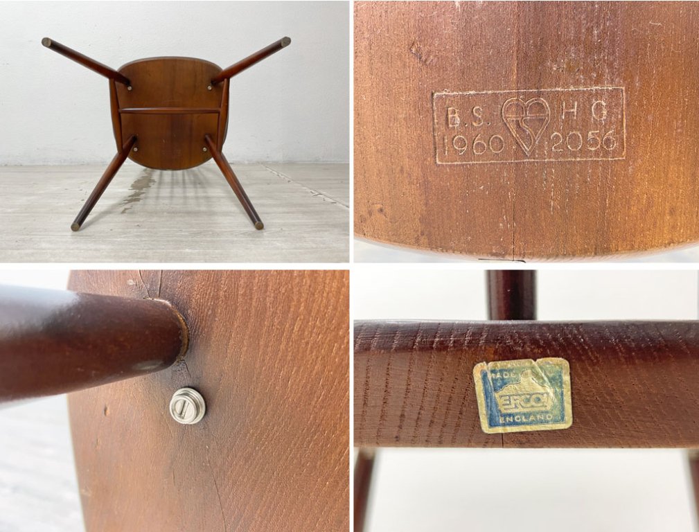同社の代表的プロダクト「クエーカーチェア」。バックスタンプとシールから1960年製造の個体と判別する事が出来ます。