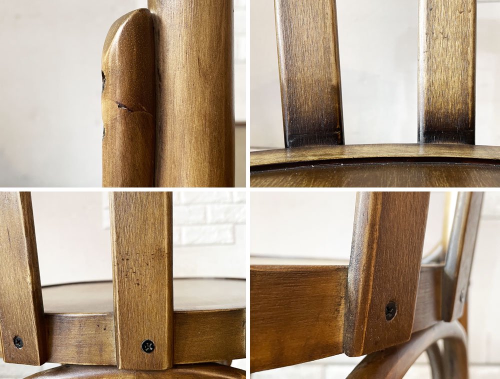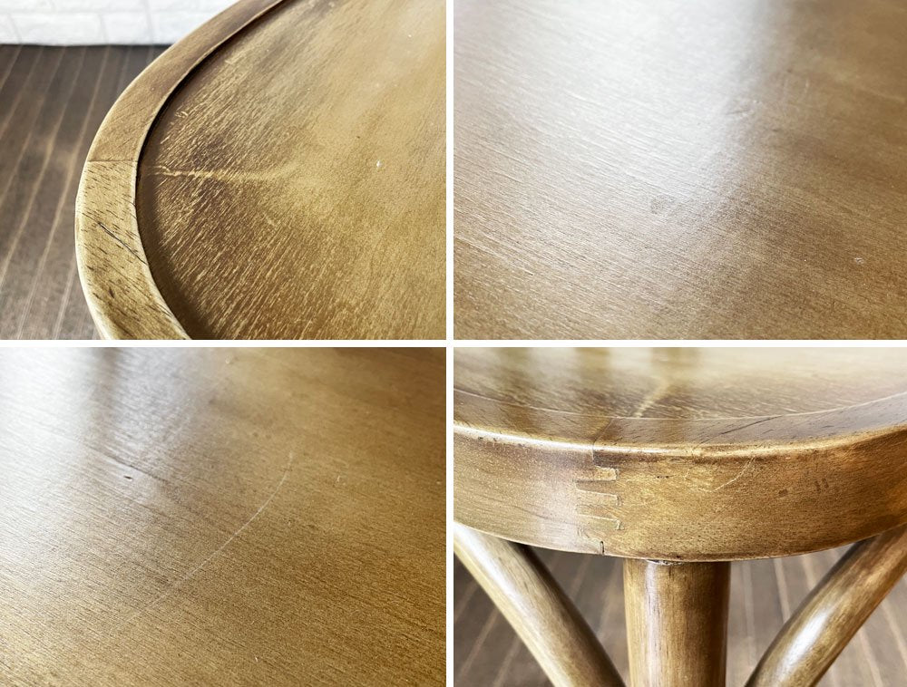 こちらは、ビンテージのような味わいをあえて残したお品物です。傷や擦れのほか、塗装のムラや取り切れない汚れ等はございますが、風合いとしてお楽しみいただけます。ご使用に問題となるがたつきやぐらつきといったダメージはございません。今後も安心して実用頂けるコンディションを保っております。
