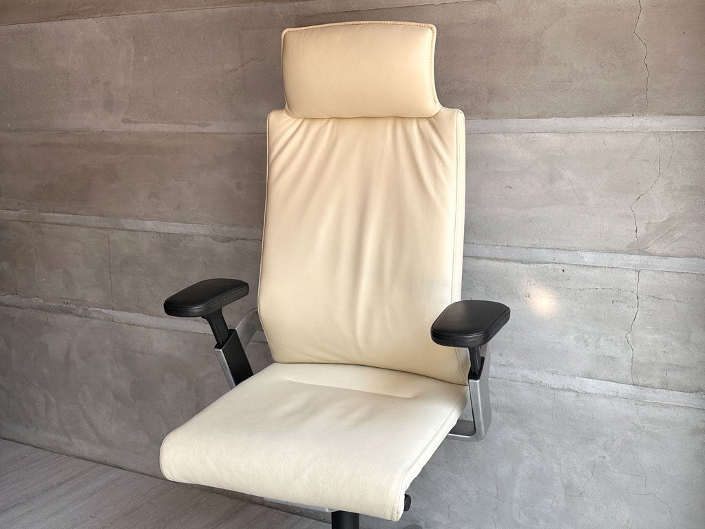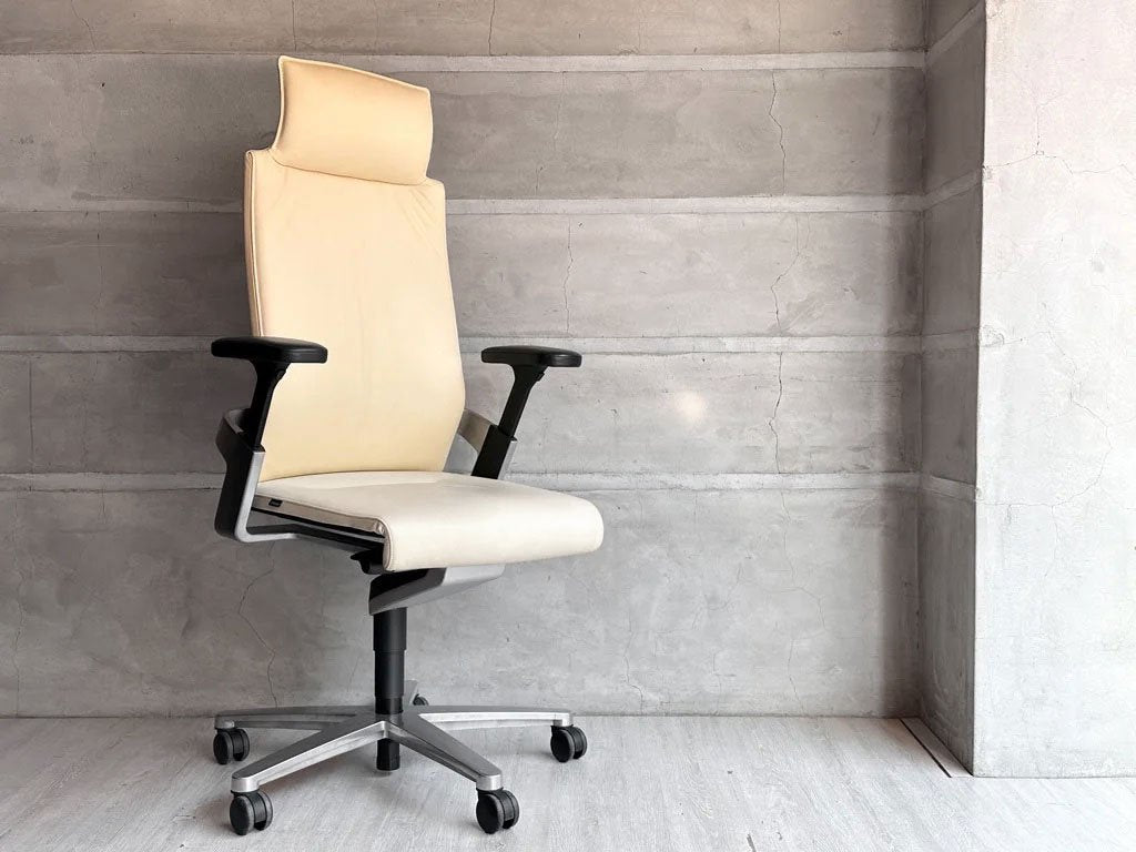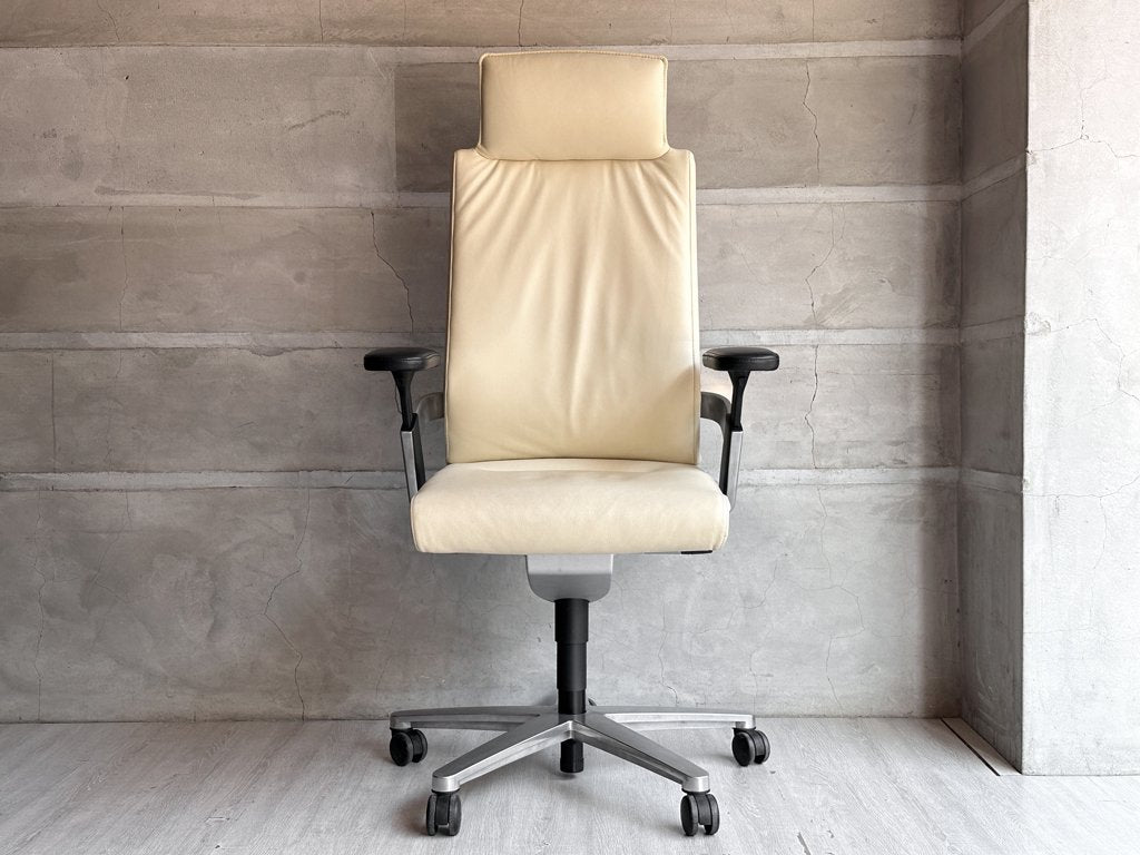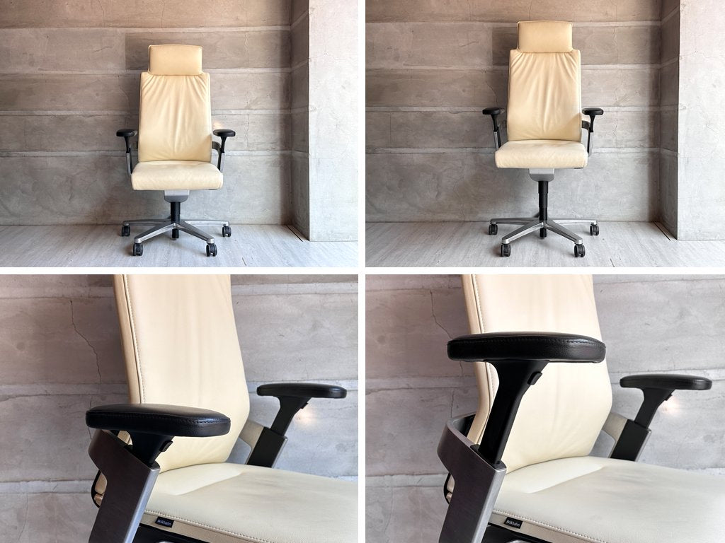 ウィルクハーン Wilkhahn オン ON ハイバック アームチェア 本革 ヘッドレスト 座面昇降 リクライニング オフィスチェア 参考価格約36万円 B ♪