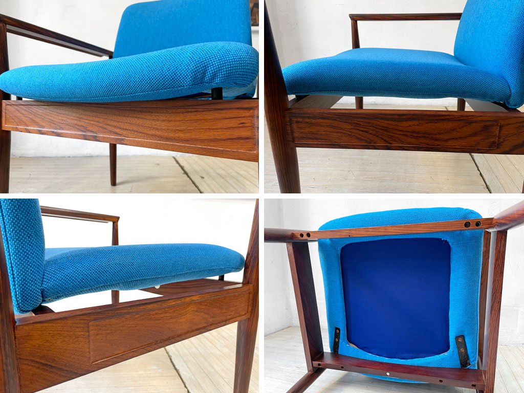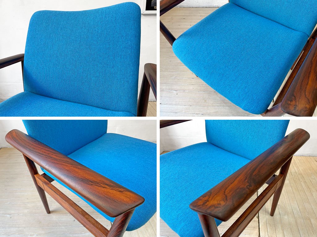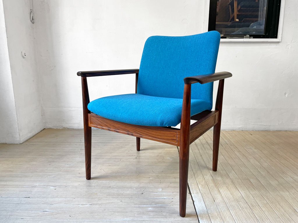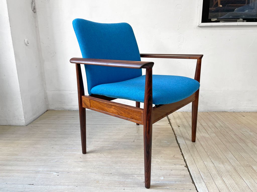 1963年にデザインされたこちらは手に馴染むアームの美しい曲線など、フィン・ユールらしいデザインとなっており、ローズウッドの杢目の美しさがより際立つ逸品となっております。