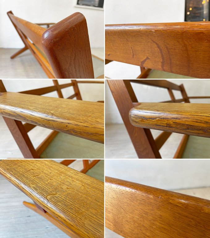 また、今回は中古市場でも中々お目にかかれない、ビンテージのオーク無垢材仕様の2人掛けソファ。程よい大きさのサイズ感は使いやすく、余計な場所も取りません。
