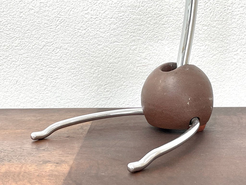 鋳造で作られたブラウンカラーの重りは心地よいざらつきのテクスチャーがあり、二股の脚先はほのかなカーブがつく事でより安定感を増しています。