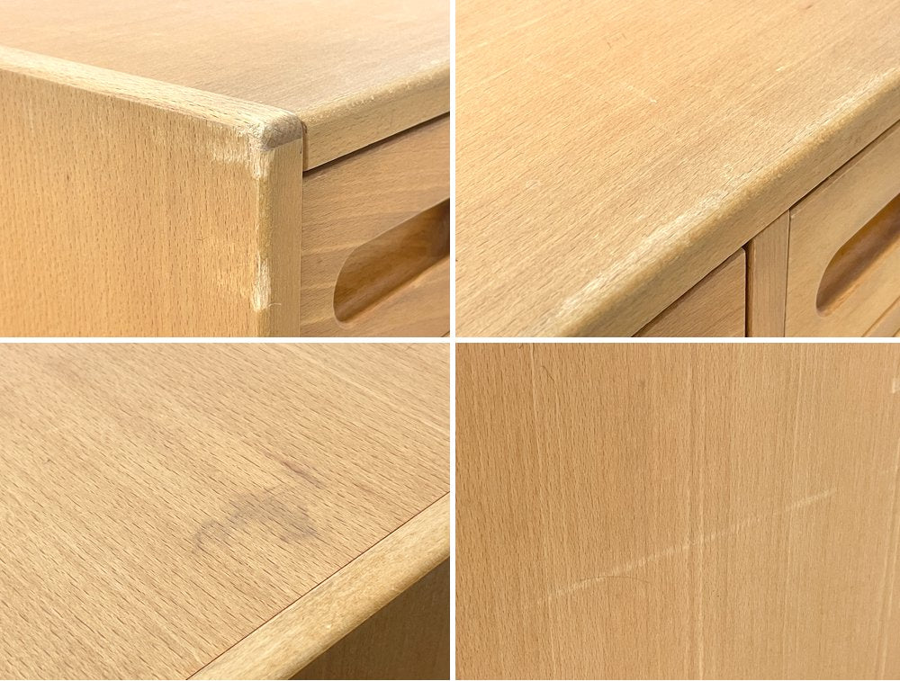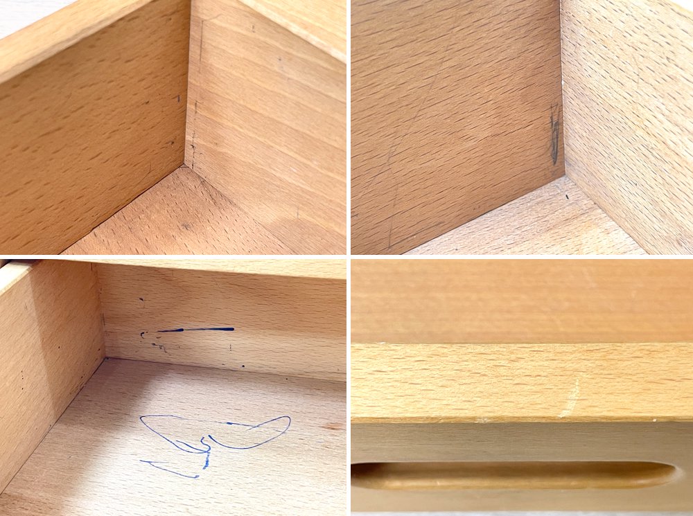 使用に伴う擦れや傷、ペン跡、色褪せ、打痕、抽斗内部の汚れなど、多少の使用感がございます。またキャスターがやや硬く感じますが、使用に大きく影響するほどではないかと思われます。