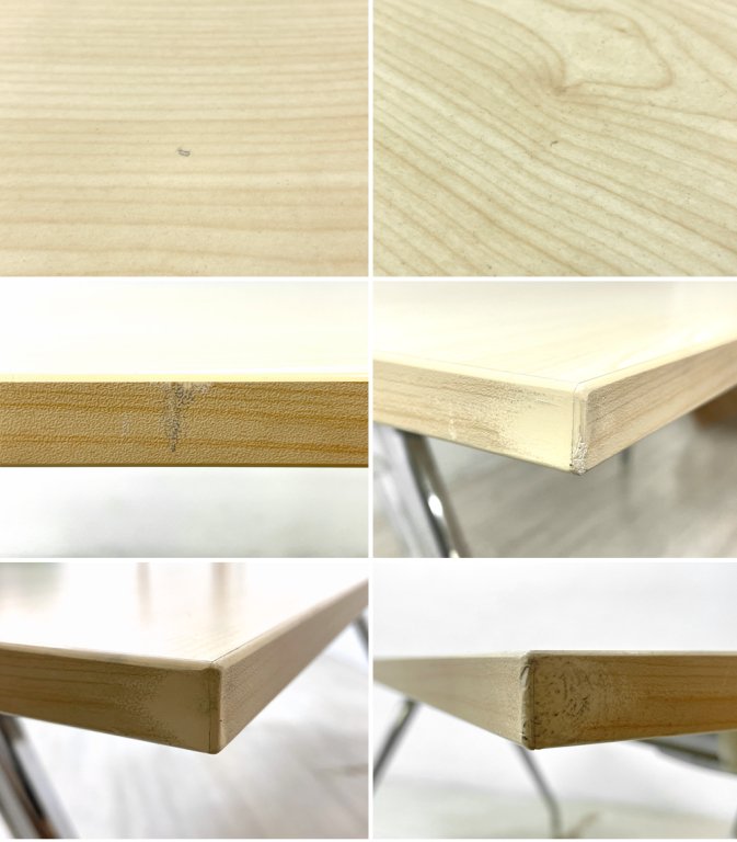 使用に伴う擦れや傷が散見されます。また、天板に打痕が見受けられます。割れやガタツキなどの目立つ様な大きなダメージはなく、これからも安心してご使用頂けるコンディションを保っております。