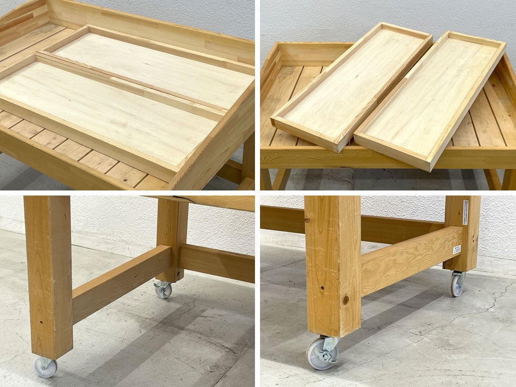 愛知ディスプレイ製作所 JAセルフ平台ワゴン HS-120 木製陳列台 W120cm キャスター付き 店舗什器 販促用ラック 陳列棚 〓