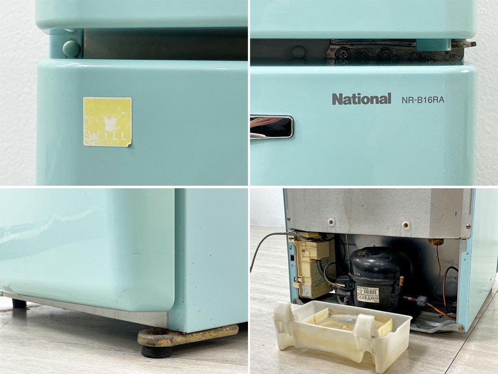 ナショナル National ウィル WiLL FRIDGE mini パーソナルノンフロン冷凍冷蔵庫 フリッジミニ ターコイズ 廃番 2003年製 162L オリジナル ノスタルジックデザイン ●