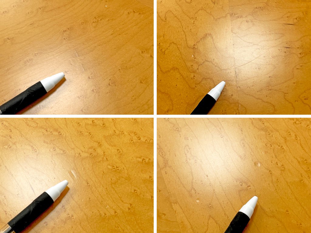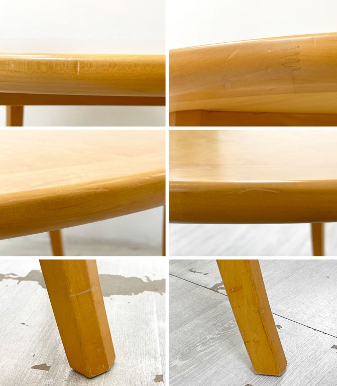 使用に伴い天板に光加減で見える線キズや小さな打痕、脚部に落としきれない汚れが多数見受けられますが、使用上問題となるような不具合はございません。今後も十分実用頂けるコンディションを保っております。