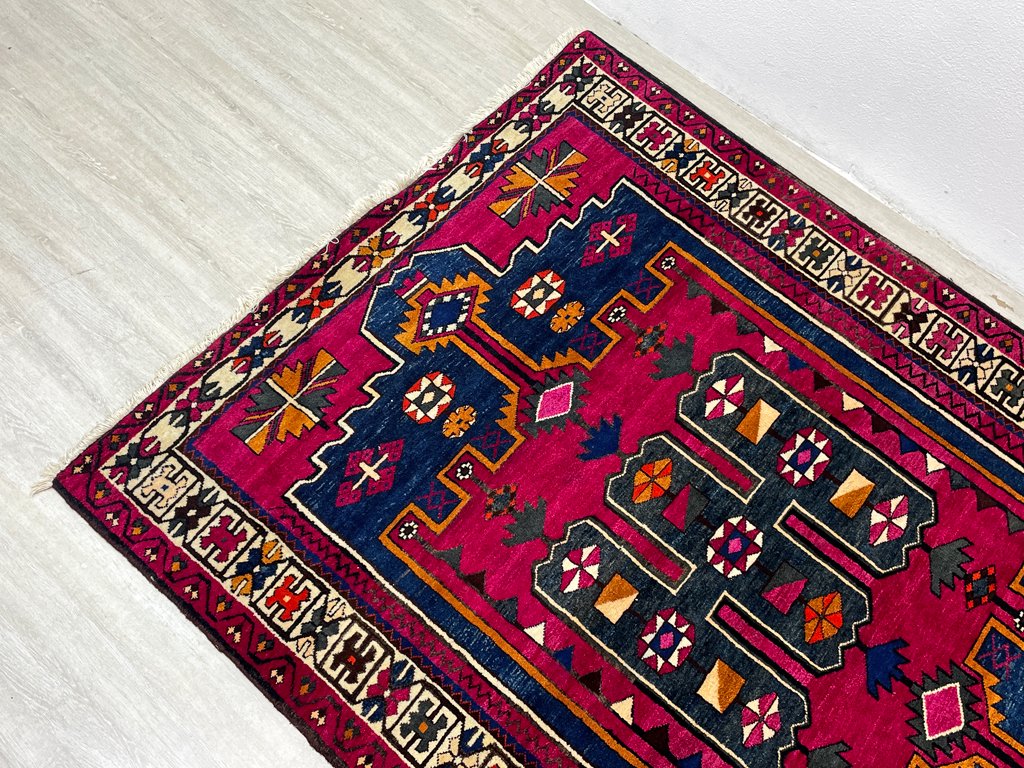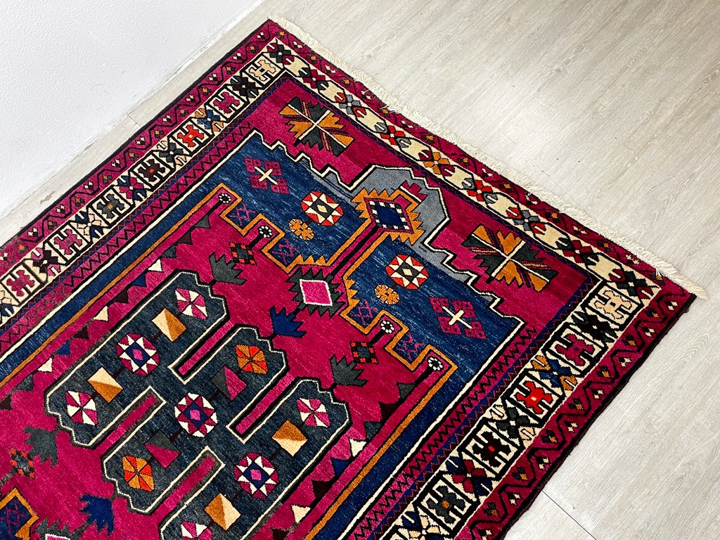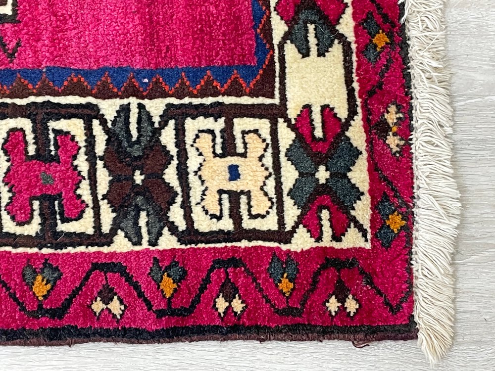 イラン バクティアリ族 トライバル ラグ ギャッベ 絨毯 ウール 210×153cm 幾何学 レッドパープル ペルシャ絨毯 ビンテージ ●