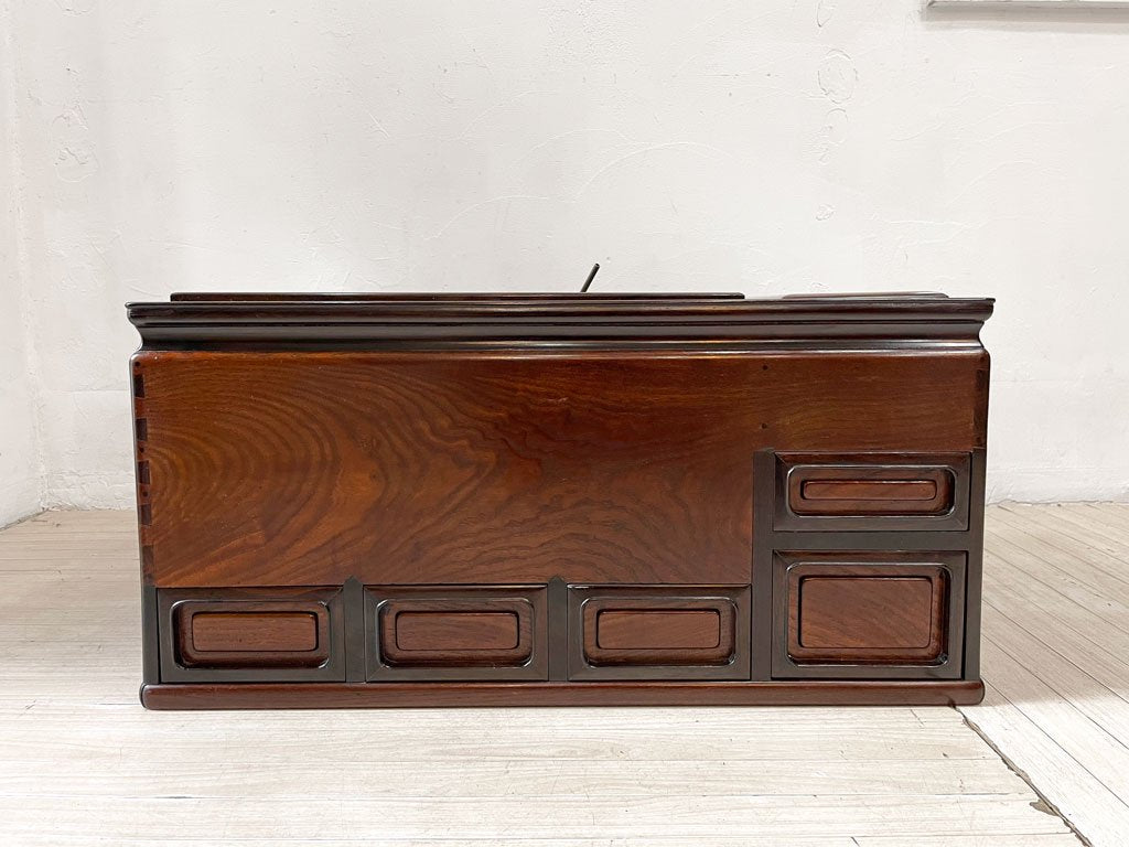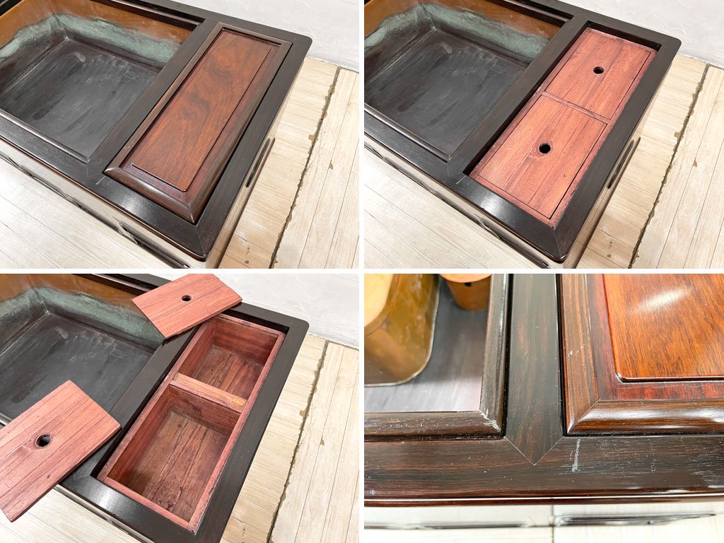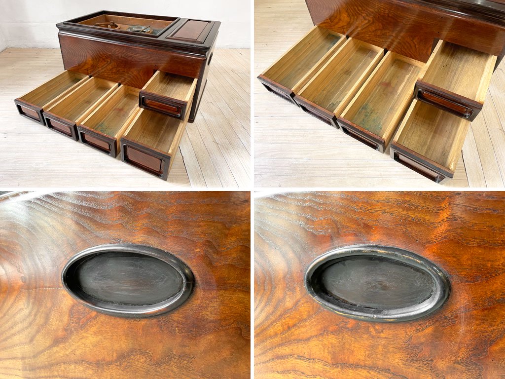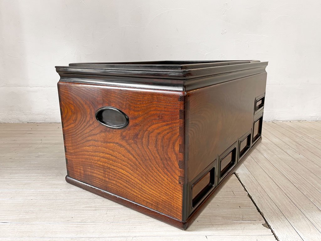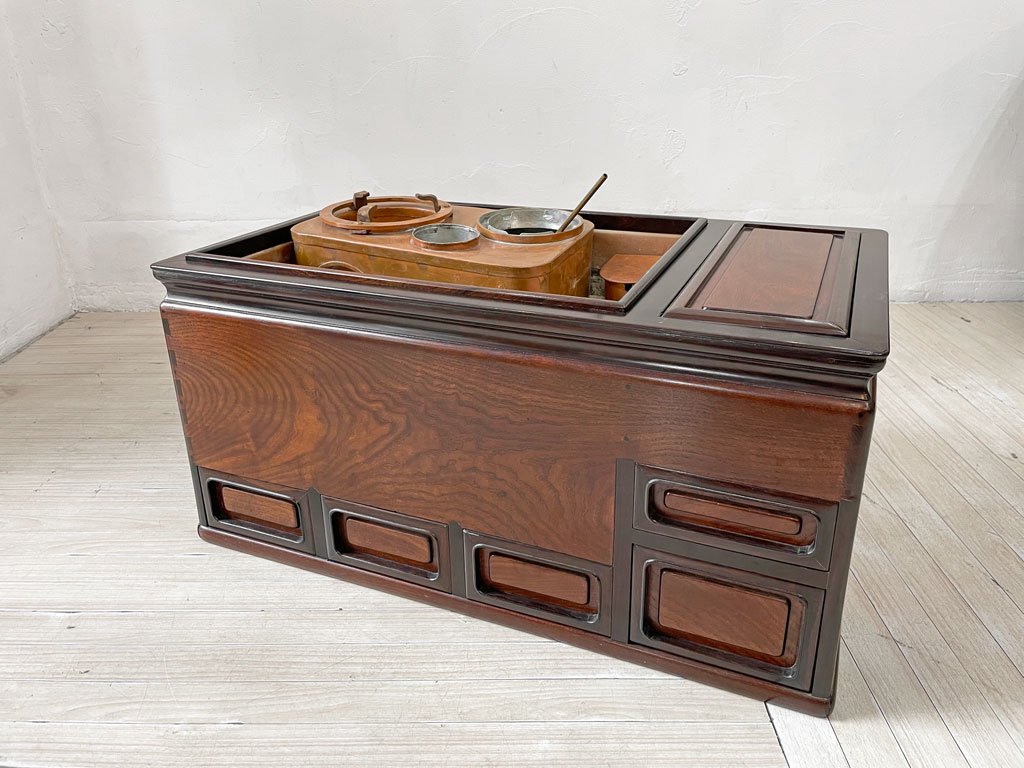 ジャパンビンテージ Japan Vintage 火鉢 関東火鉢 江戸前長火鉢 欅 黒檀 唐木 無垢材 囲炉裏 抽斗5杯 民芸家具 古民具 付属品付き ★