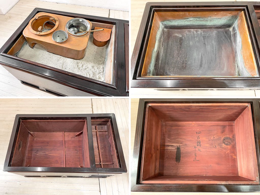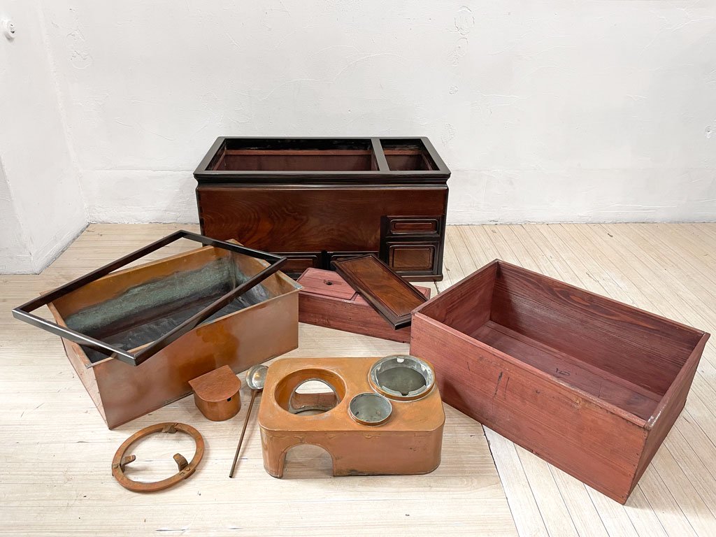ジャパンビンテージ Japan Vintage 火鉢 関東火鉢 江戸前長火鉢 欅 黒檀 唐木 無垢材 囲炉裏 抽斗5杯 民芸家具 古民具 付属品付き