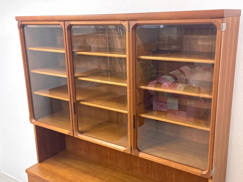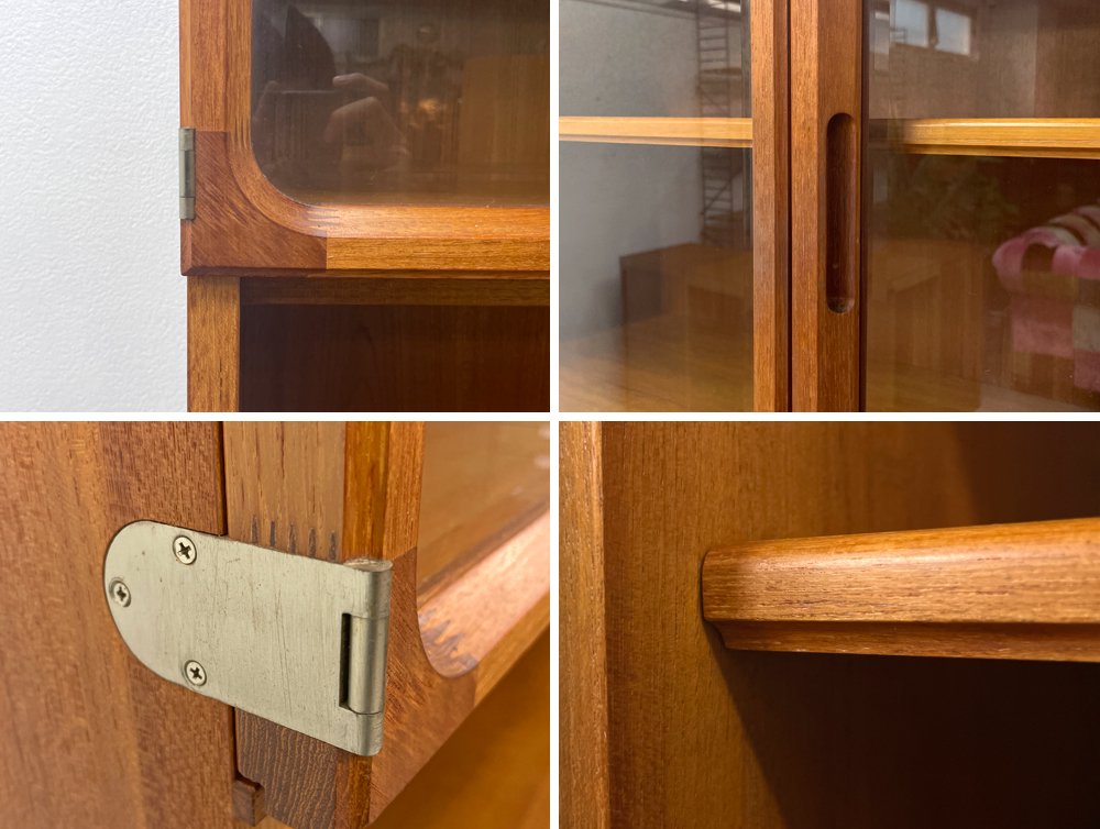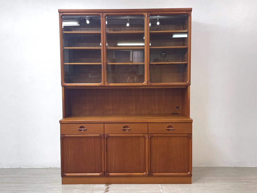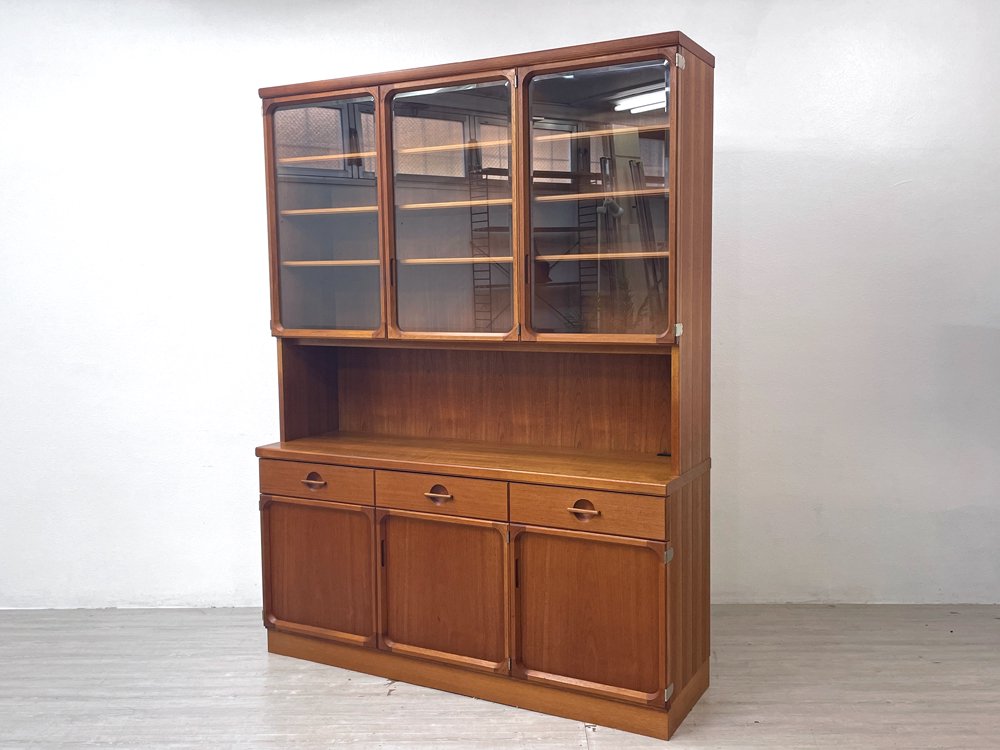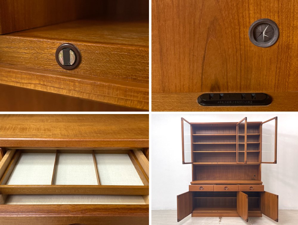 日田工芸 マキシム maxim ビンテージ チーク材 キッチンボード カップボード 食器棚 キャビネット ガラス扉 W151cm 北欧スタイル ●