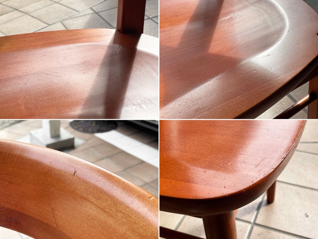 使用に伴い座面に線傷、その他各所に打痕や擦れ、小傷、ペイントロスが散見されますが、著しく美観を損ねるものはございません。ガタツキや割れ等使用上問題となる点もなく、これからも気持ちよくお使い頂けるコンディションを保っております。