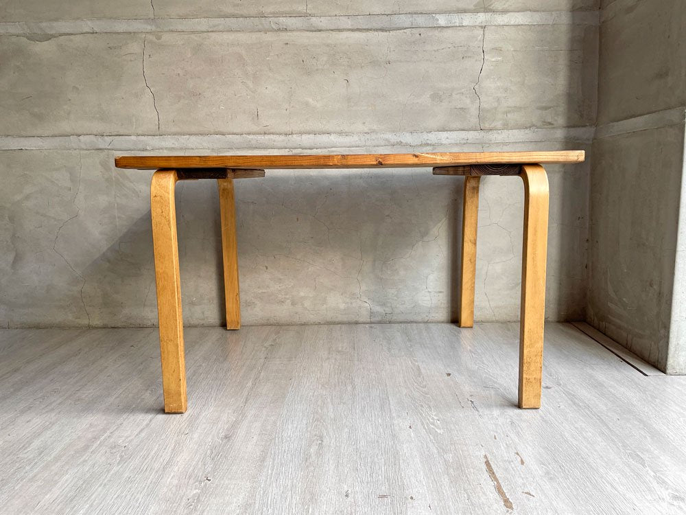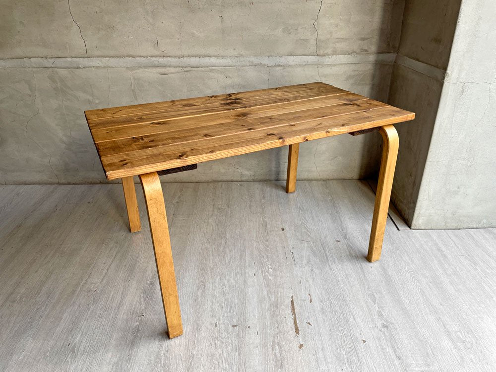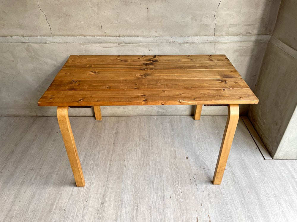直線的な天板に曲木で作られた脚部がアクセントとなっています。