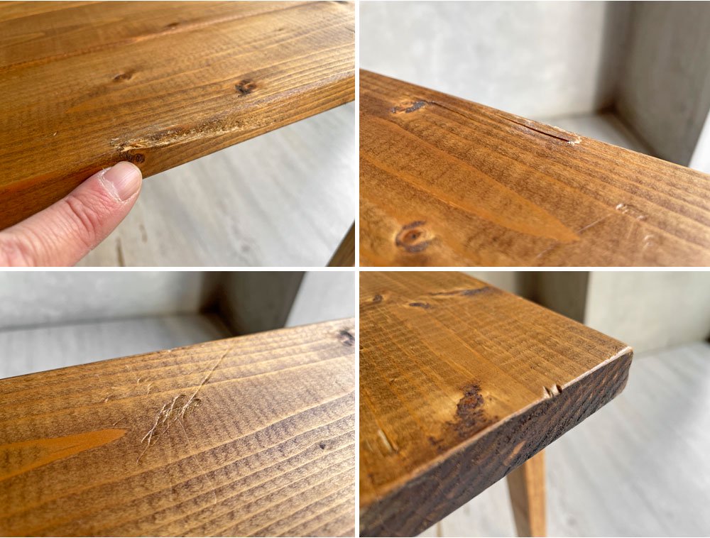縁にやや目立つ打痕と、ひび割れがございます。そのほか、打痕や線傷、擦り傷が散見されるものの、通常使用は十分実用可能なコンディションを保っております。
