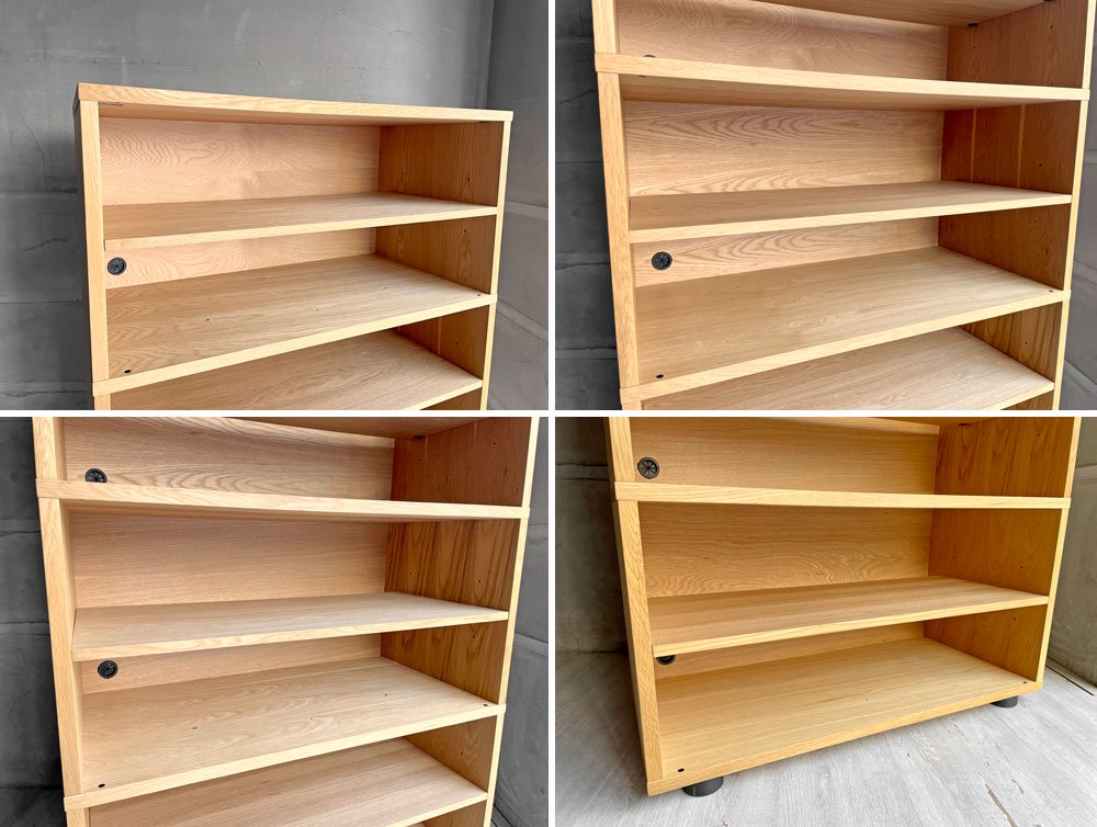 基本セットに追加セットを3段加えた仕様となり、各キャビネットには高さ調節可能な棚板が一枚付属しております。
