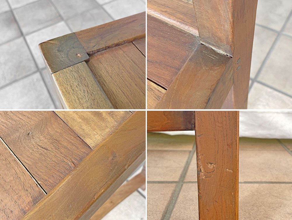使用に伴う細かな擦れ傷や打痕、色ムラ等はございますがいずれも風合いを損なうものではございません。古材を使用して作られるアイテムのため木の節や僅かな隙間、製造時の接着痕などは風合いとしてお楽しみ下さいませ。グラつき等ご使用に問題となるダメージは無く、今後とも気持ち良くお使い頂けるコンディションを保っております。