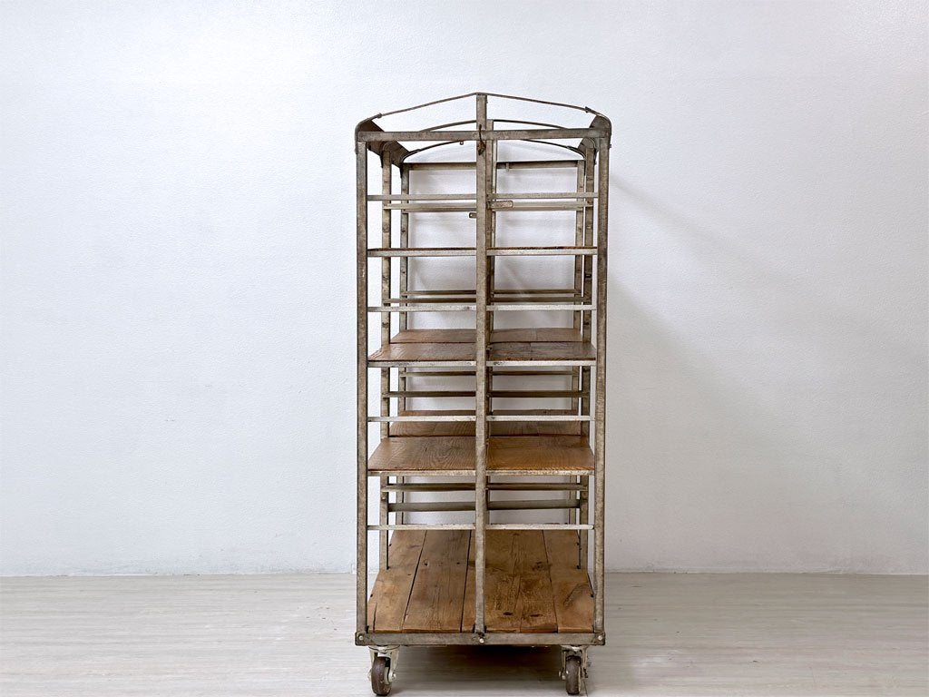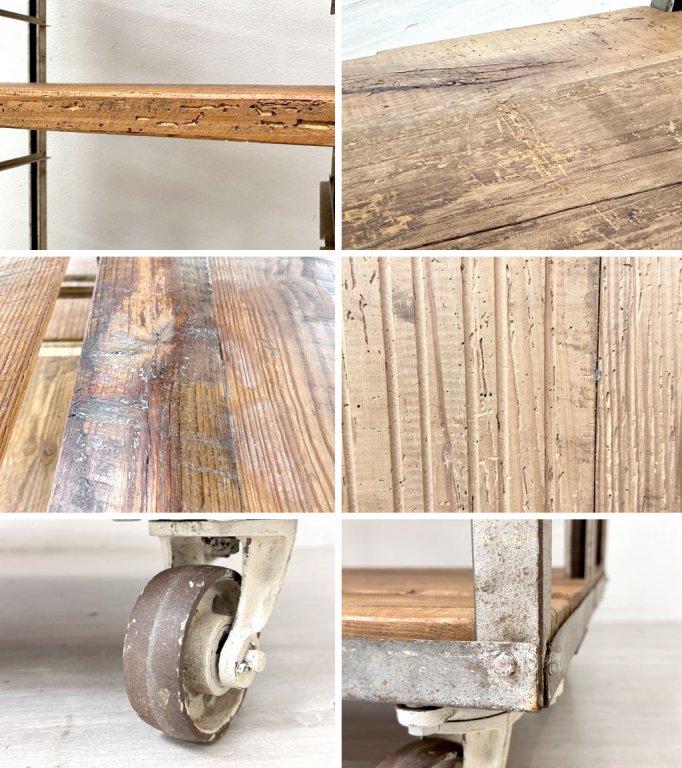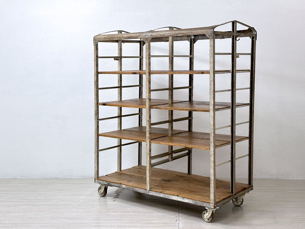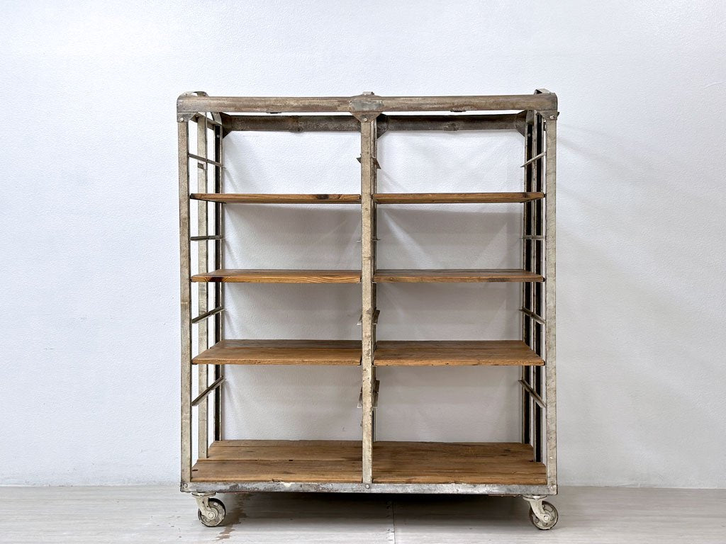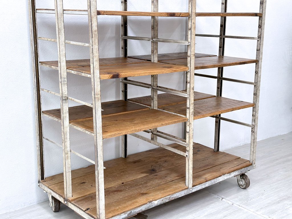 ビンテージ vintage ベーカーズラック オープンシェルフ キャスター付き アイアン×パイン古材 ベルギー 工業系 店舗什器 ●
