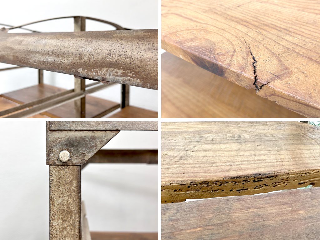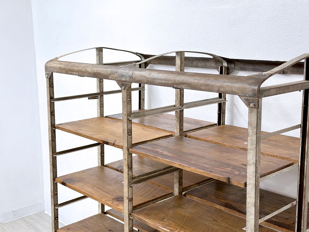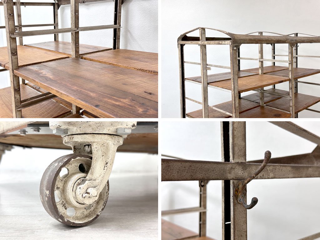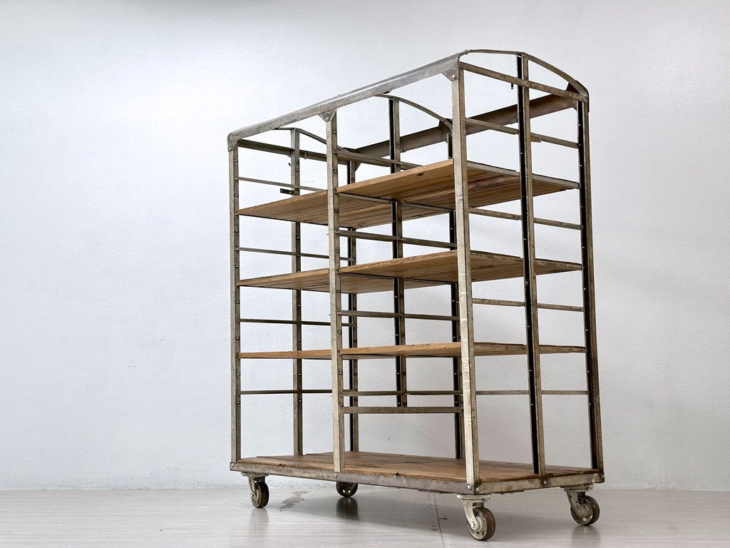 ビンテージ vintage ベーカーズラック オープンシェルフ キャスター付き アイアン×パイン古材 ベルギー 工業系 店舗什器 ●