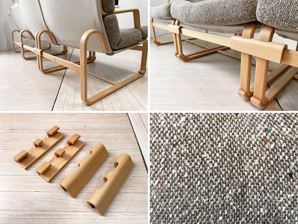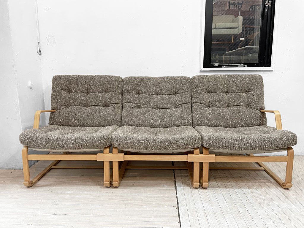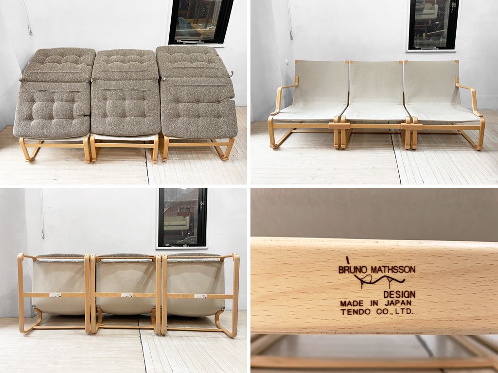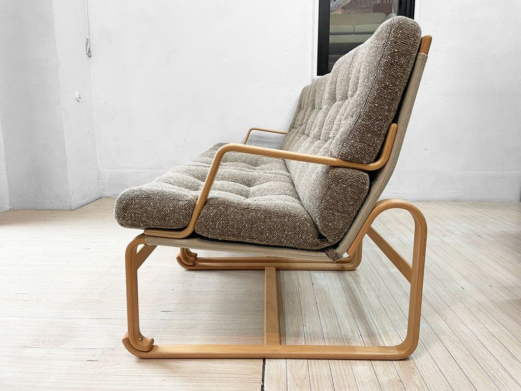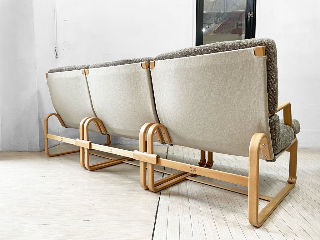 天童木工 TENDO マルガリータ 3Pソファ イージーチェア 肘付き ハイタイプ サクソニー ダークブラウン ビーチ材 ブルーノ・マットソン 定価¥\416,900- 美品 ★
