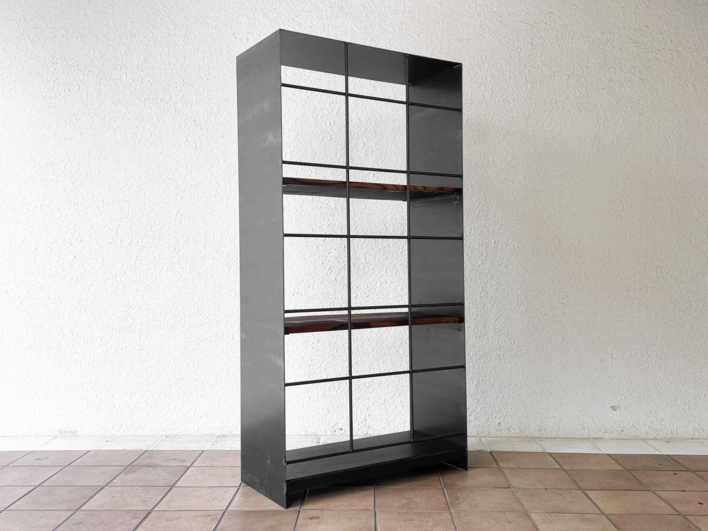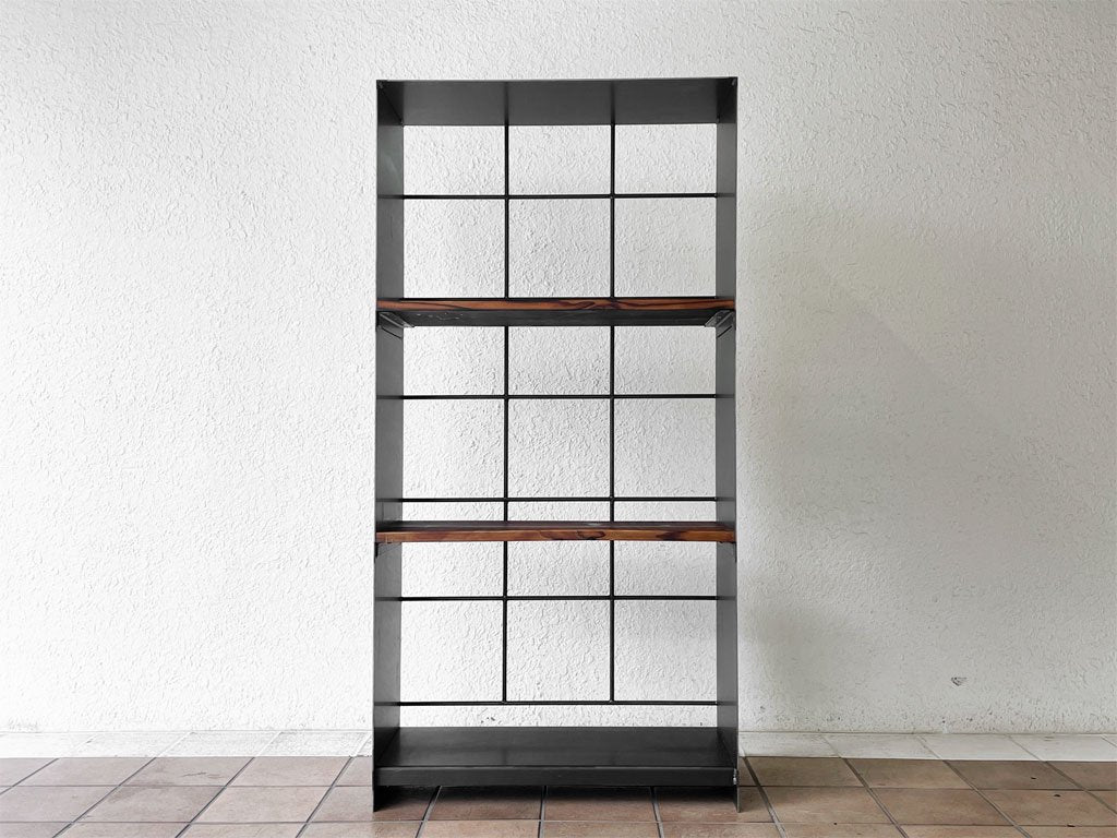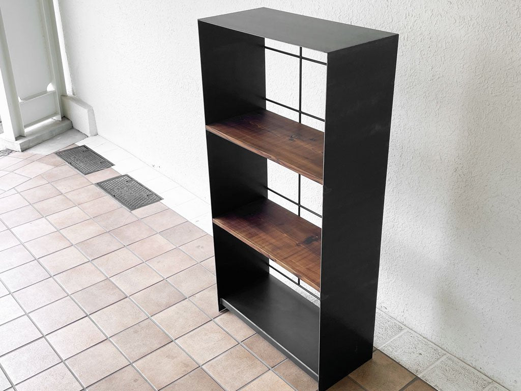 こちらは同社の代表的プロダクトのひとつ『 アイアンのブックシェルフ 黒皮仕上げ 』。余計な装飾をなくし、異素材をミックスさせる事で素材の個性を際立たせたデザイン。