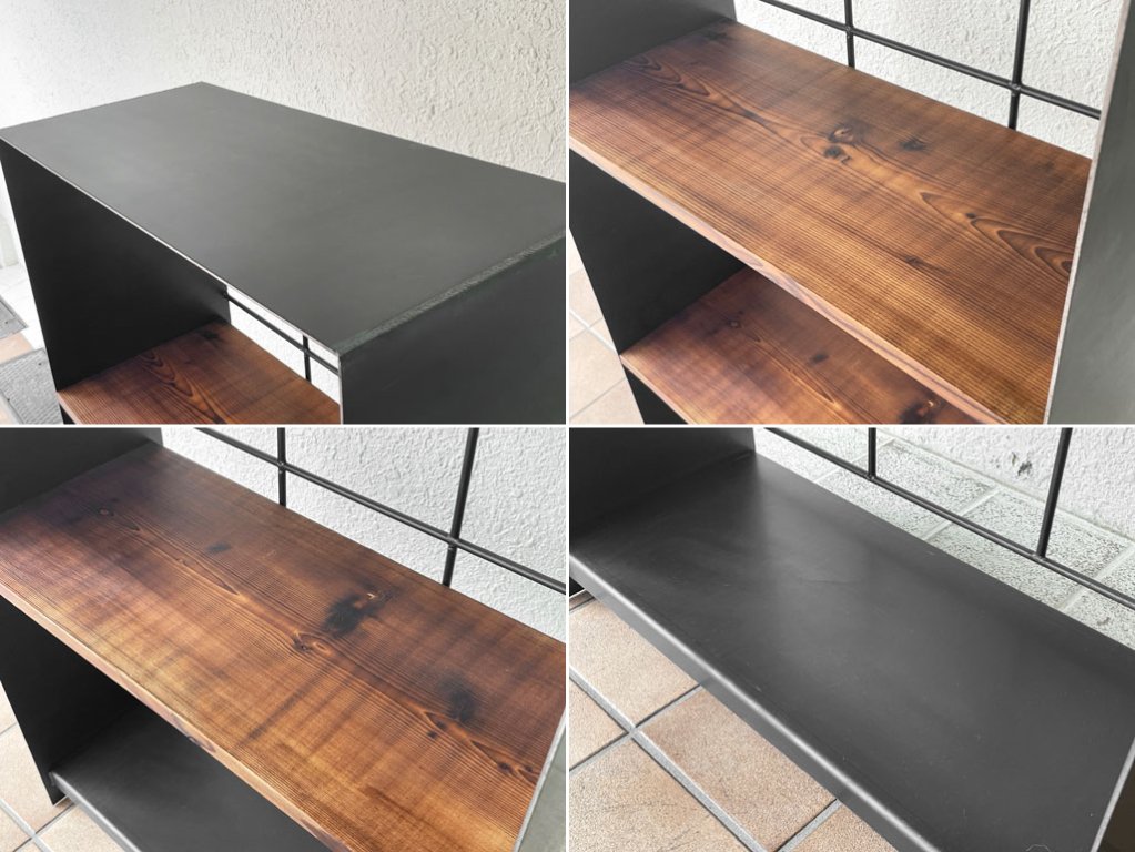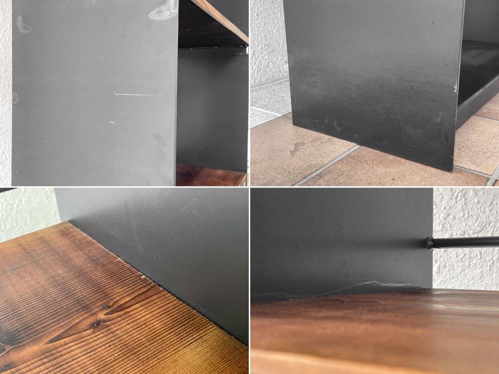 使用に伴い棚板に僅かな擦れ、フレームには線傷や擦れ、製造時からの溶接跡がございますが、製品の雰囲気とよく馴染んでおり、味としてお楽しみ頂けるかと思います。ガタツキや歪み等使用上問題となるダメージは見受けられず、これからも気持ちよくお使い頂けるコンディションを保っております。