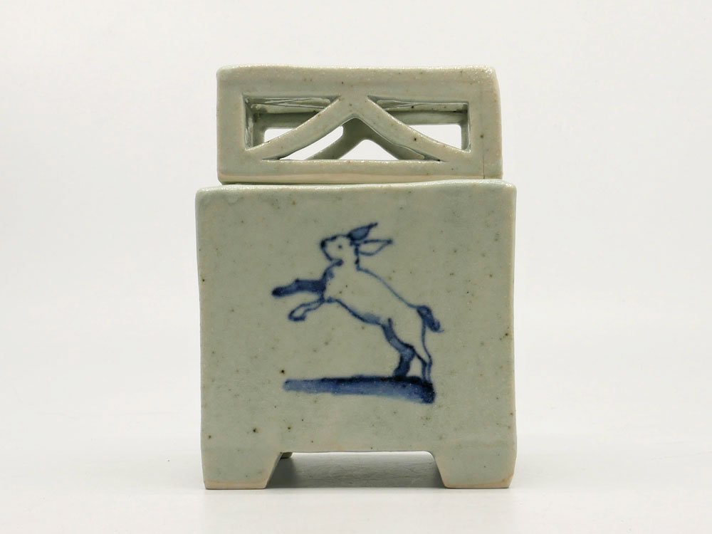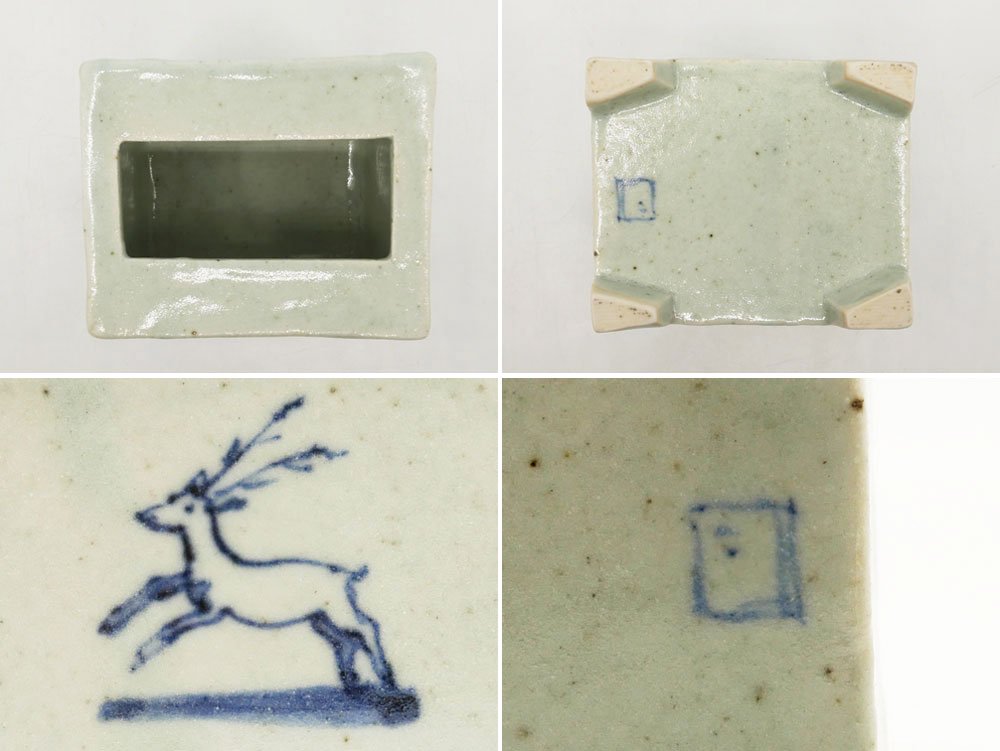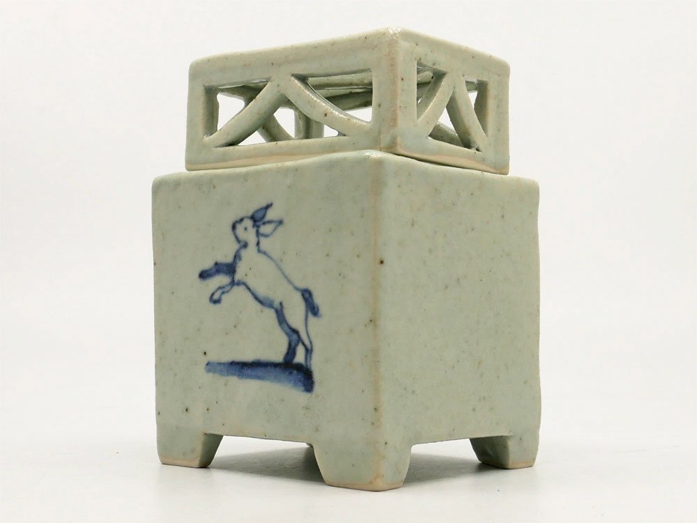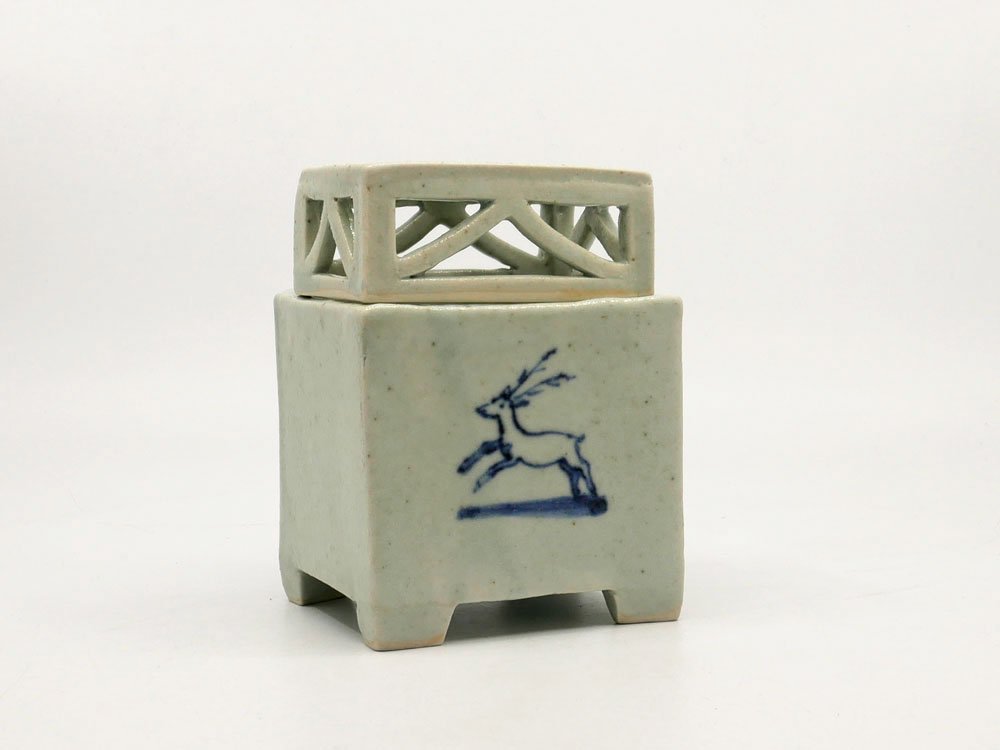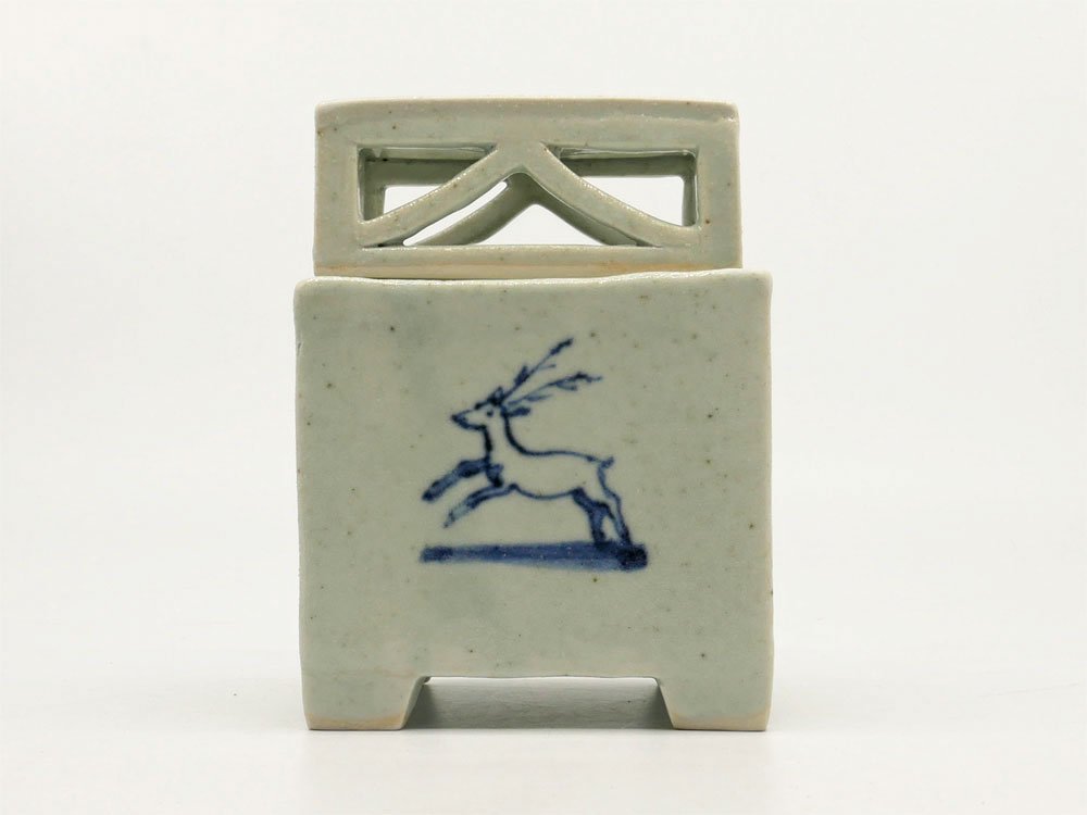 こちらは、染付による鹿の文様が描かれた香炉です。