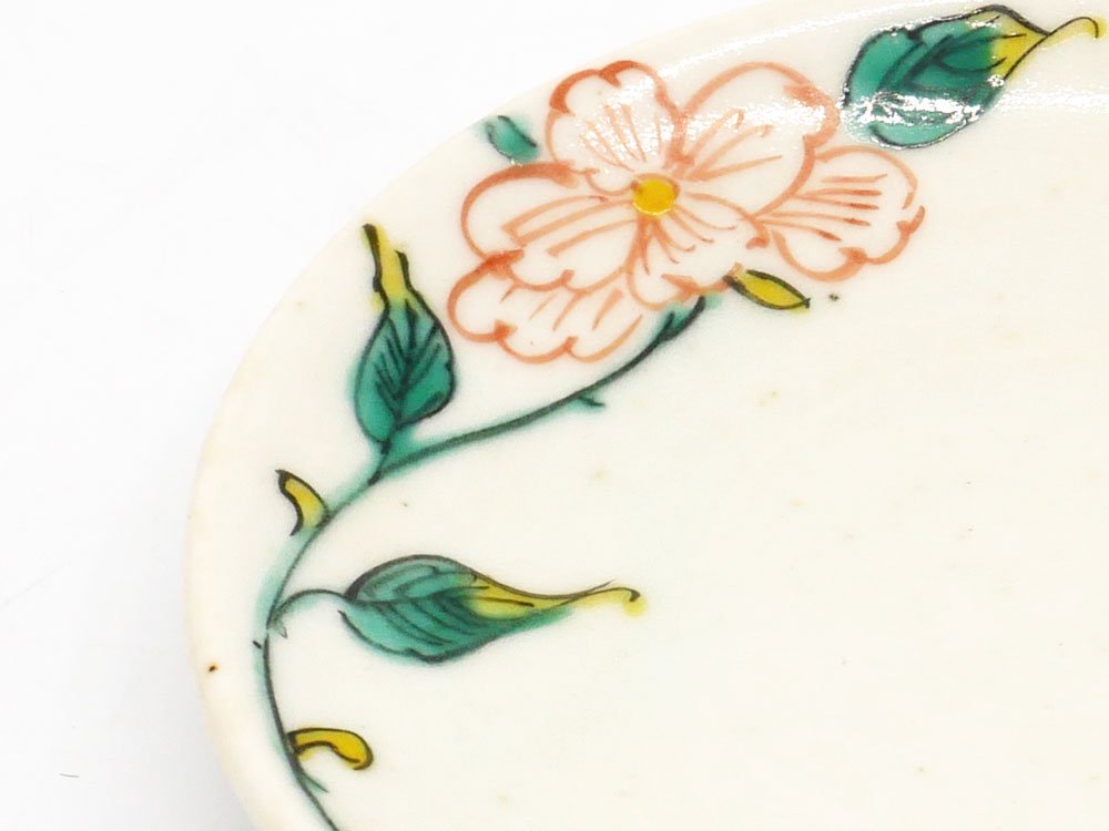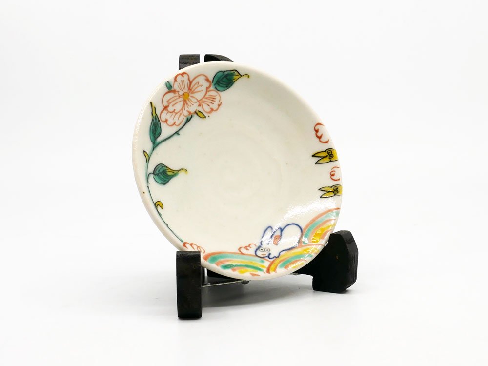 松浦ナオコ 豆皿 プレート Φ9cm 兎 ウサギ 草花 絵付け 磁器 現代作家 ●