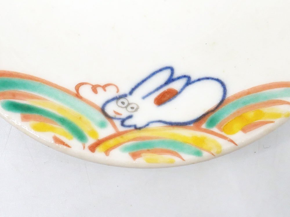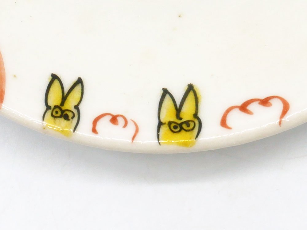 こちらは、カラフルな色使いと手書き感が愛らしいウサギが描かれた豆皿です。