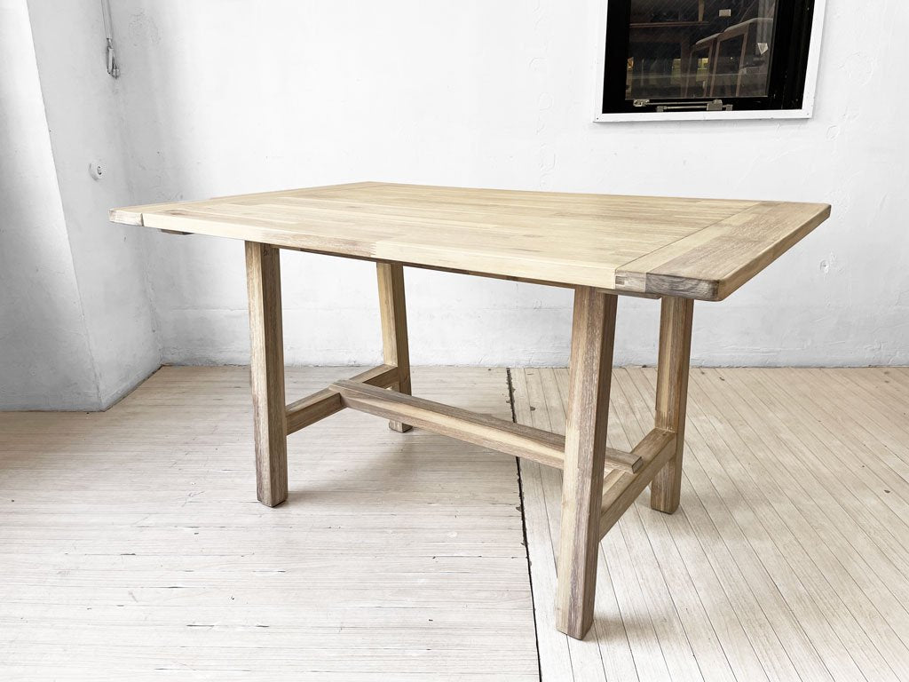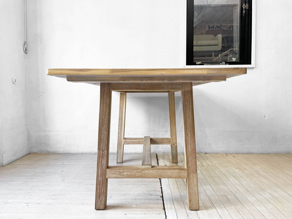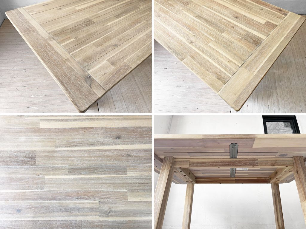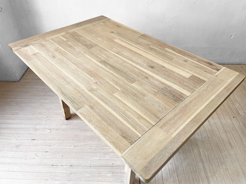 アカシア無垢材をホワイトウォッシュ加工したフレームによって、軽やかでラフな表情を楽しめるこちらのテーブル。