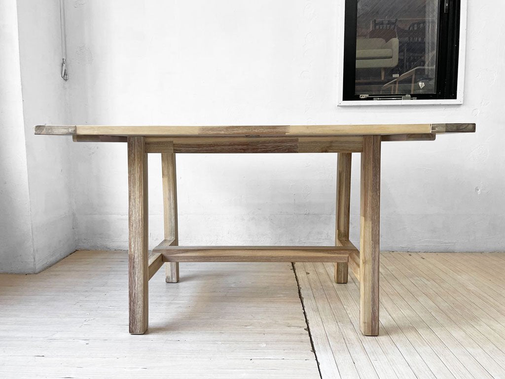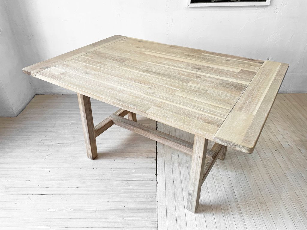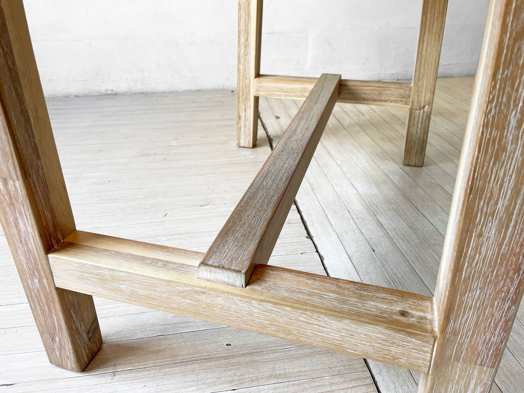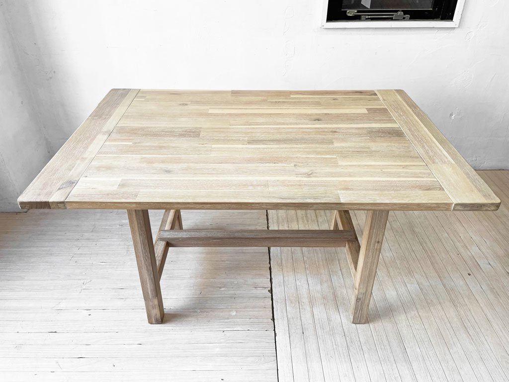 アカシア無垢材をホワイトウォッシュ加工したフレームによって、軽やかでラフな表情を楽しめるこちらのテーブル。