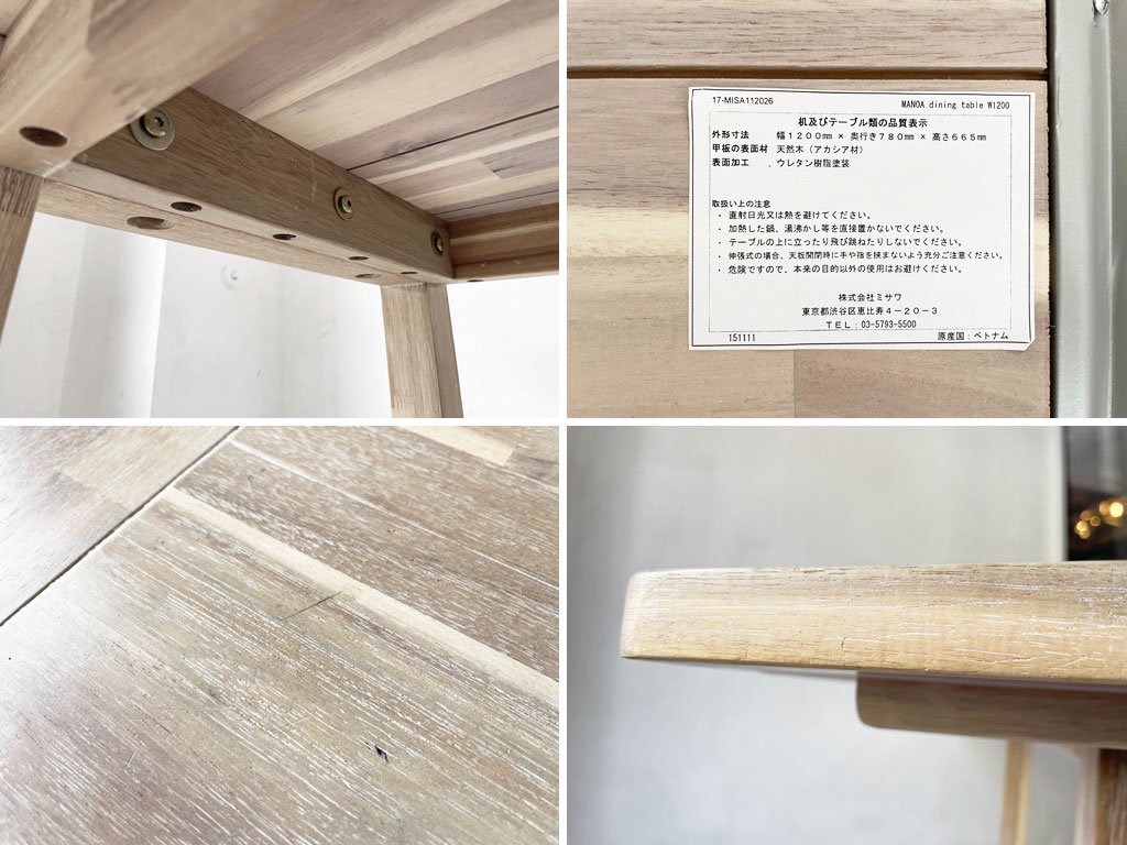 ウニコ unico マノア MANOA リビング ダイニング テーブル アカシア無垢材 W120cm 西海岸 ナチュラル 定価¥50,600- ★