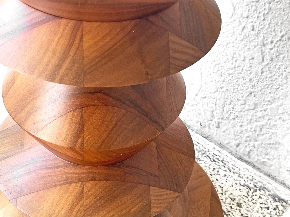 高級木材ウォールナット無垢材を旋盤を使って削り出したソリッドなデザイン。持ち上げるとずっしりとした木そのものの重さを感じる事が出来ます。