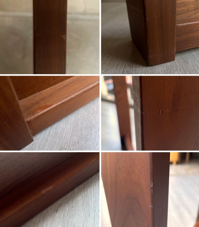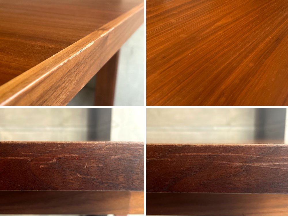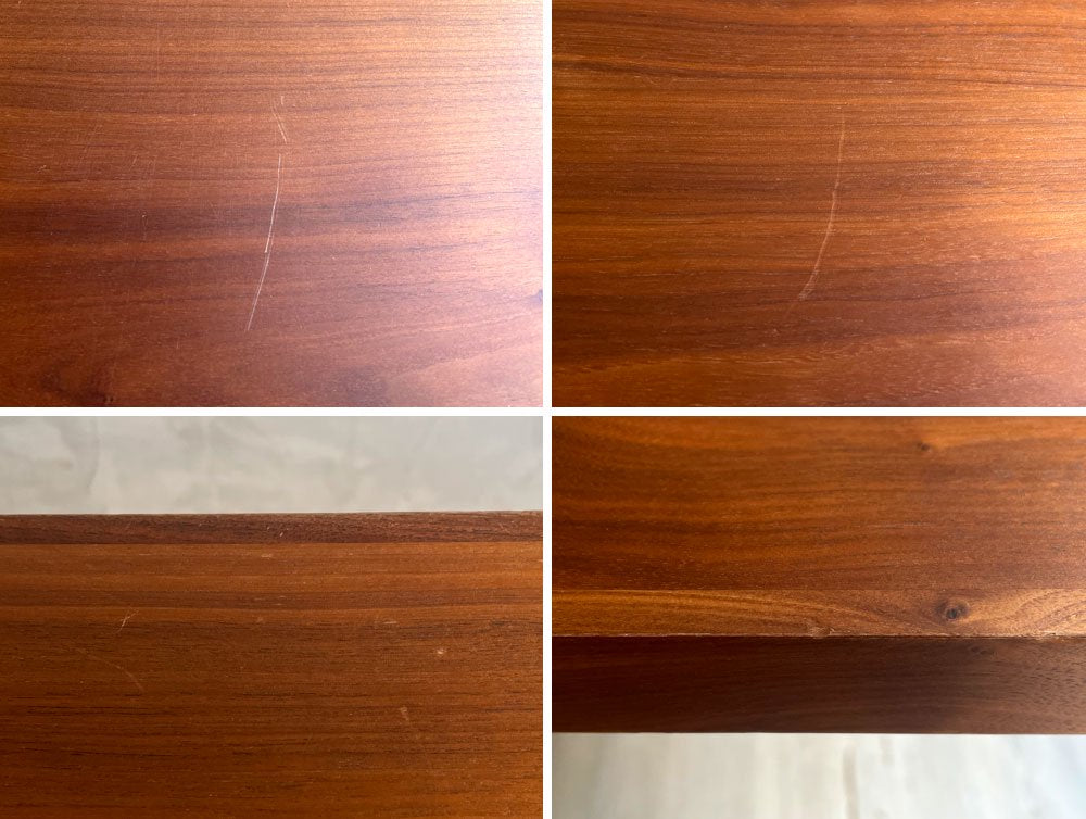使用に伴う擦れや傷、打痕が散見されます。天板側面に目立つ線状の打痕が見受けられます。割れやガタツキ等の目立つ様な大きなダメージは無く、これからも安心してご使用頂けるコンディションを保っております。
