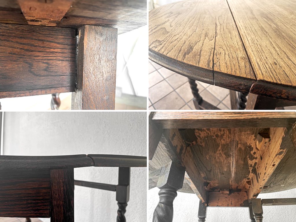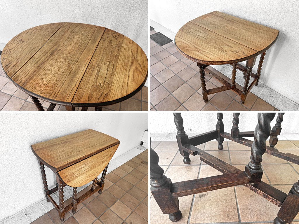 UKビンテージ UK Vintage ゲートレッグテーブル バタフライテーブル ツイストレッグ エクステンション 伸長式 オーク材 英国家具 現状品 ◇