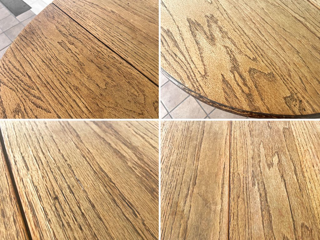 こちらは、ビンテージのお品物となります。使用・経年に伴い、傷や擦れ、打痕や色ムラ、染みやペイントロス、落としきれない汚れや金具の錆、天板には反りや天板のサンディングによる色の抜け、フレームには隙間や補修による接着痕と言った、経年なりのダメージが見受けられます。また、片側のバタフライ天板には割れがあり、通常の使用には問題ございませんが、重量のある物を乗せたり、体重をかけると割れが進行する可能性が御座いますのでご注意下さいませ。上記のコンディションを鑑みて、通常よりお求めやすい価格での出品となりますので、是非ご検討下さいませ。
