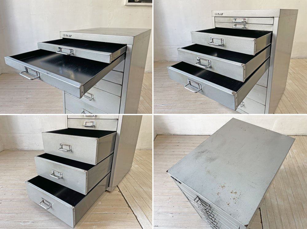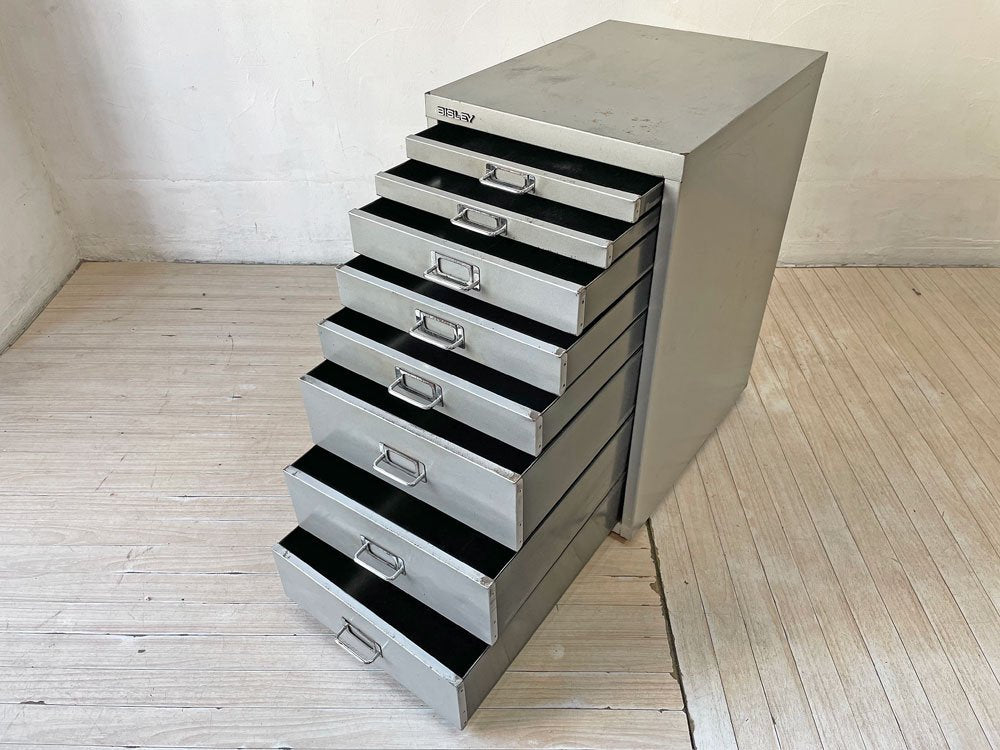 ビスレー BISLEY ベーシック BASIC シリーズ BA3/8 キャビネット デスクワゴン A3 抽斗8杯 クローム キャスターベース オフィス家具 英国 廃番 ★