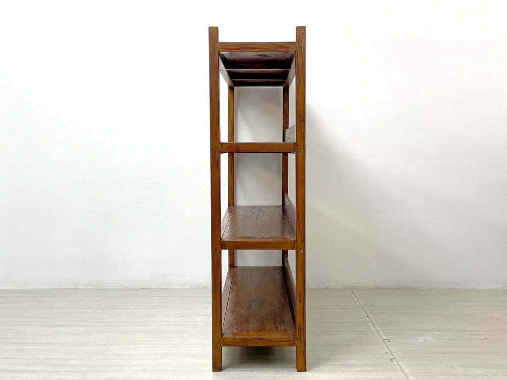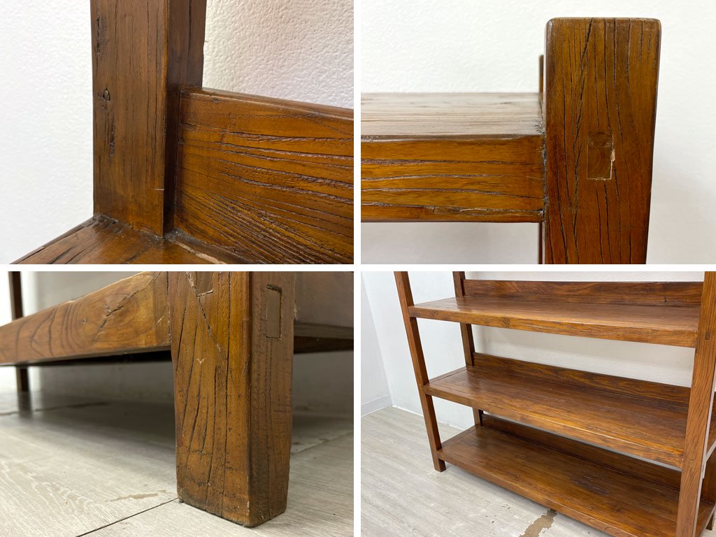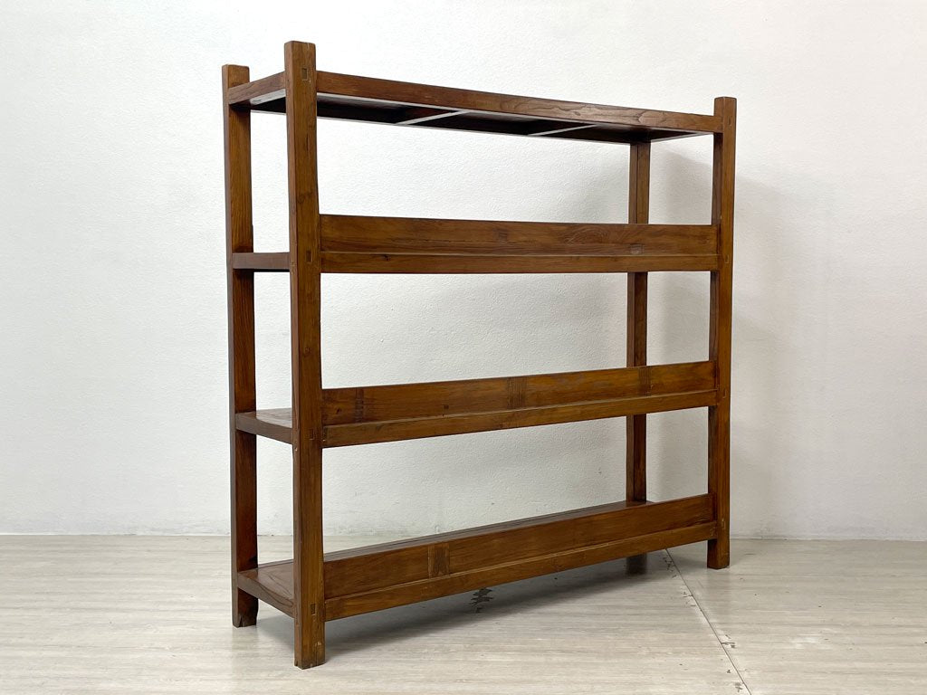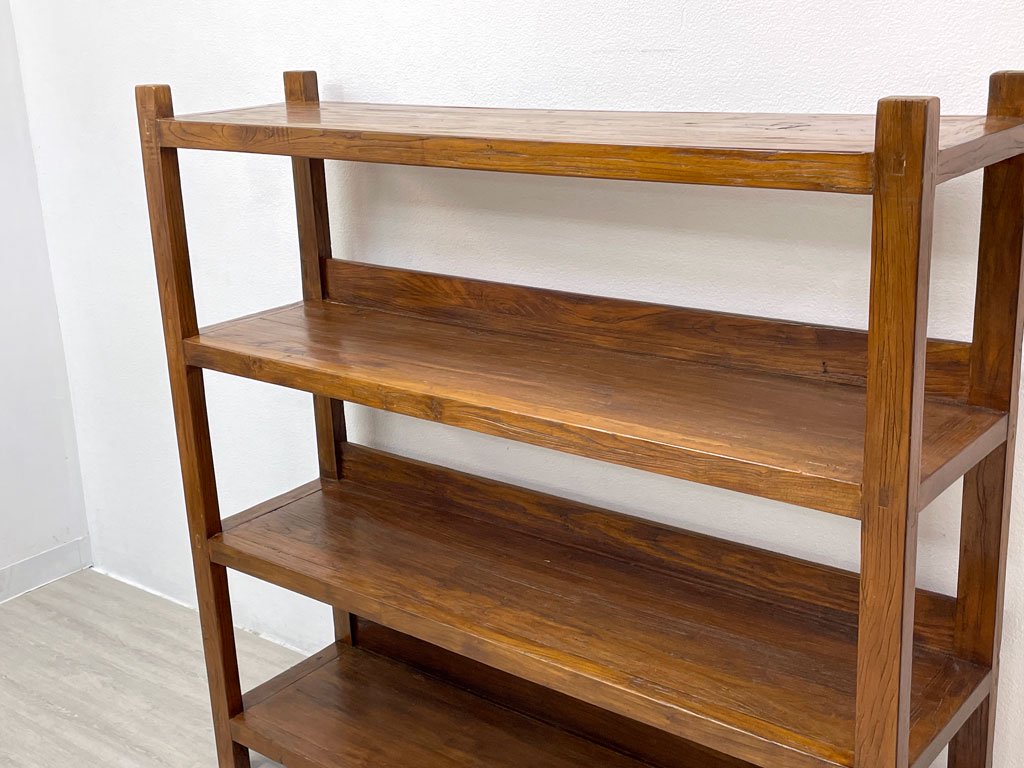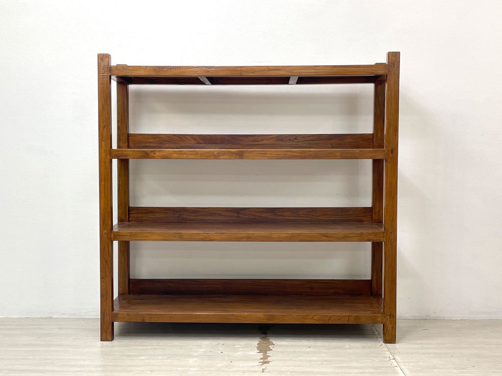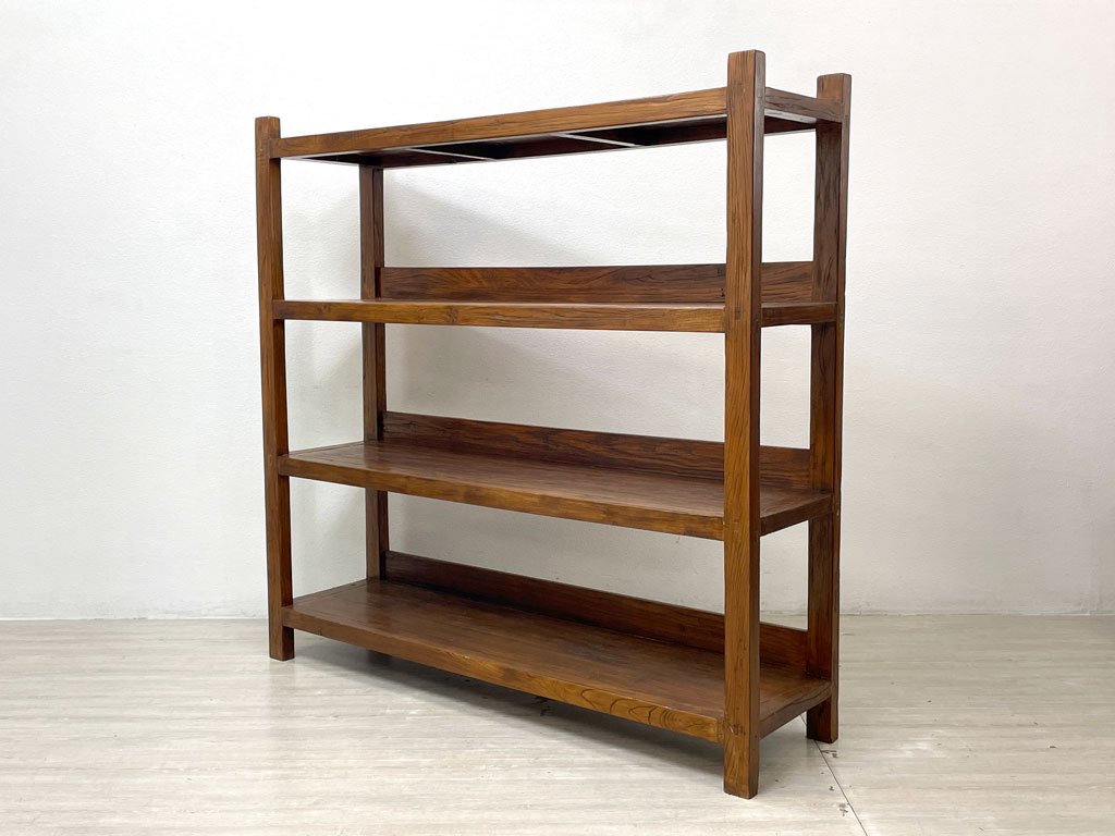 欅無垢材 古材 オープンシェルフ ディスプレイラック ブックシェルフ 陳列棚 本棚 店舗什器 W150cm ●