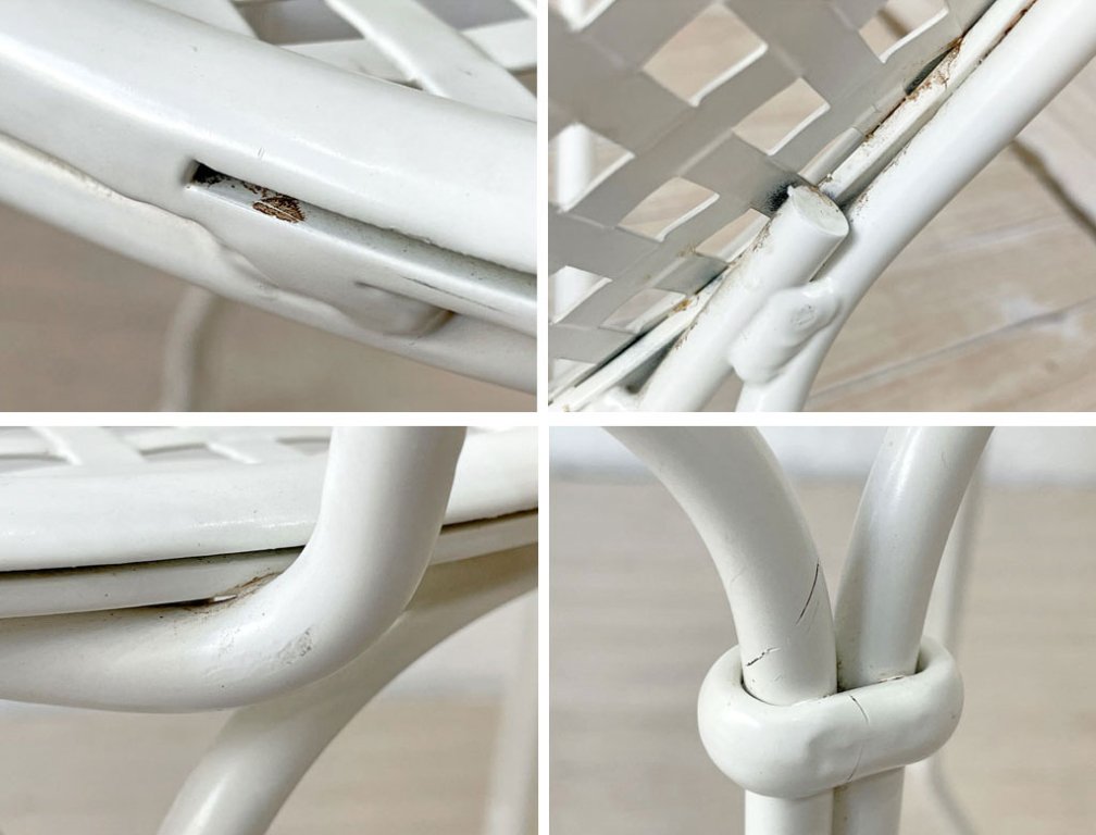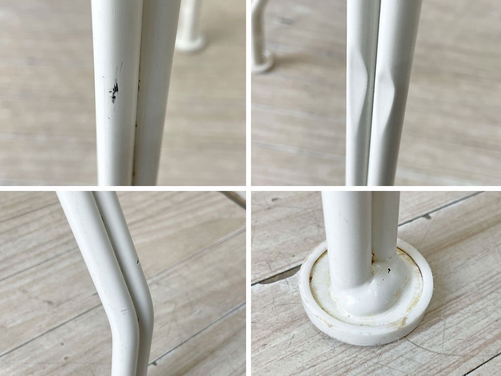 使用に伴う擦れや傷、打痕、錆び、落としきれない汚れ、ペイントロスが全体に散見されます。また片方の後ろ脚に一部凹みが見られますが、強度に問題はございません。その他ガタつきやグラつき等、使用に問題となるダメージは見られず、これからもまだまだ実用いただけるコンディションを保っております。